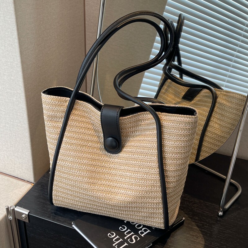 夏天时尚百搭编织大容量单肩包