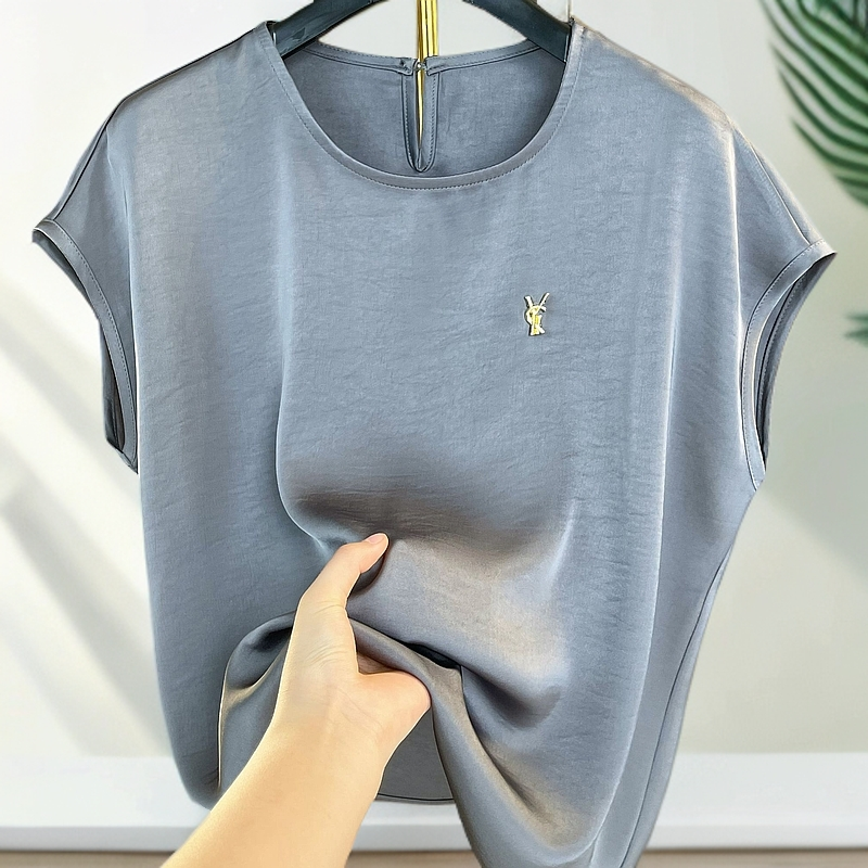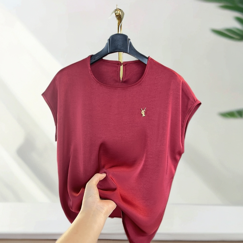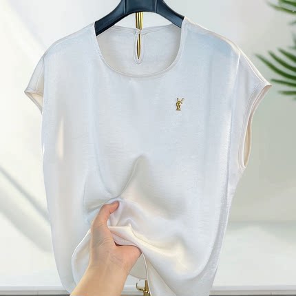 真丝衬衫女夏季新款高级感气质减龄圆领T恤上衣桑蚕丝显瘦小衫女