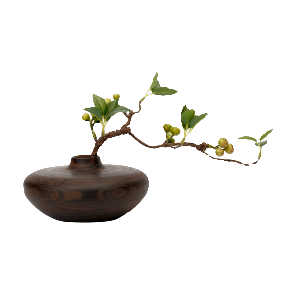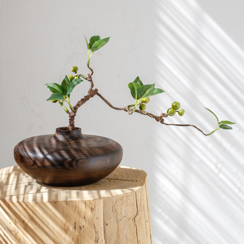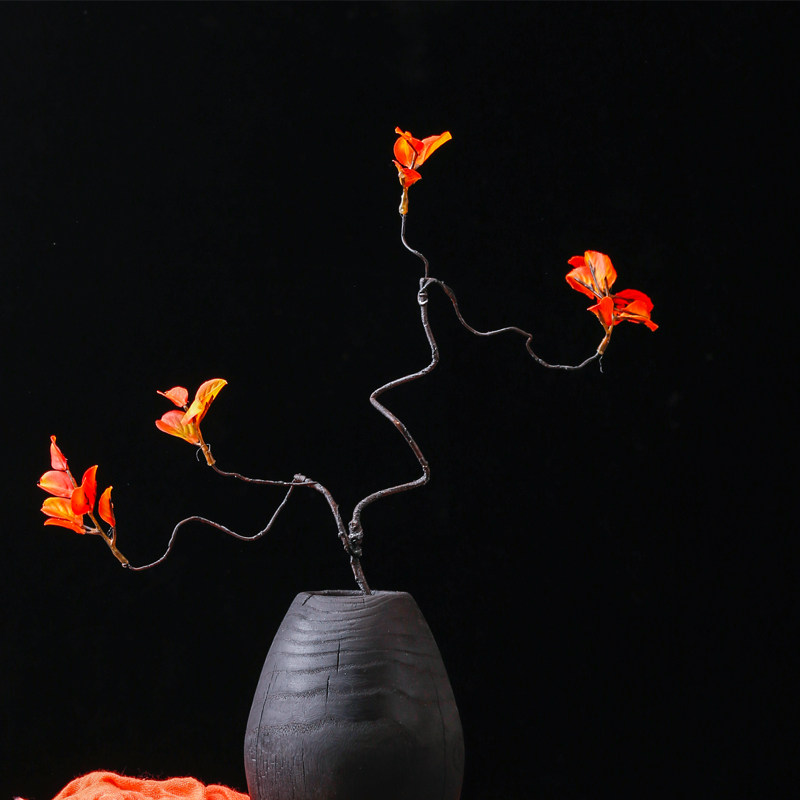 枯枝绿叶仿真花禅意木质花瓶摆件花艺绢花茶几餐桌民宿装饰新中式