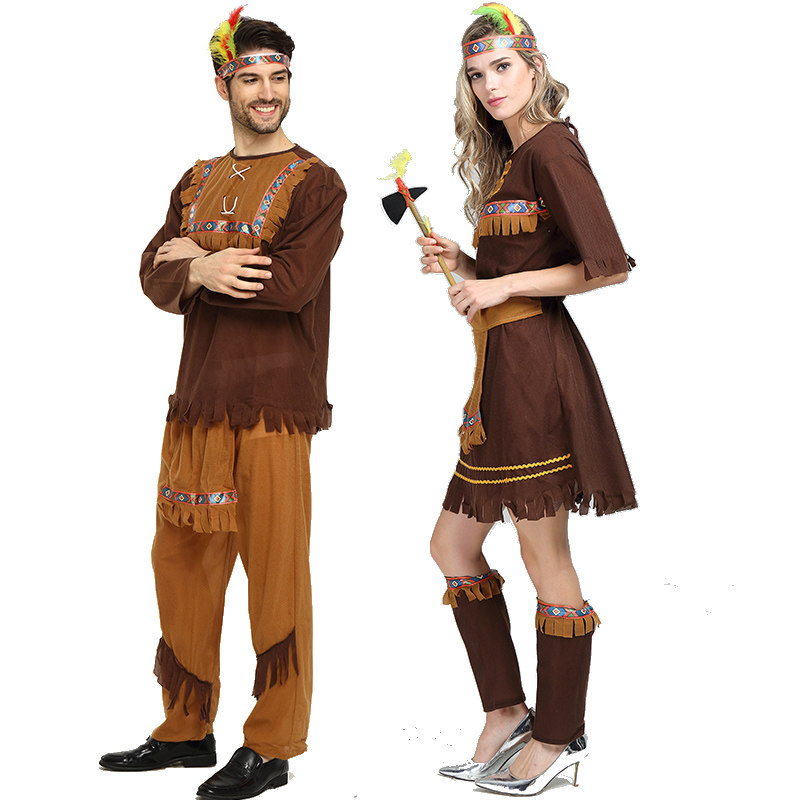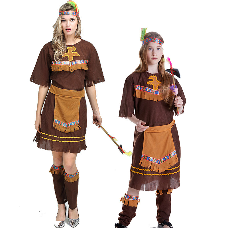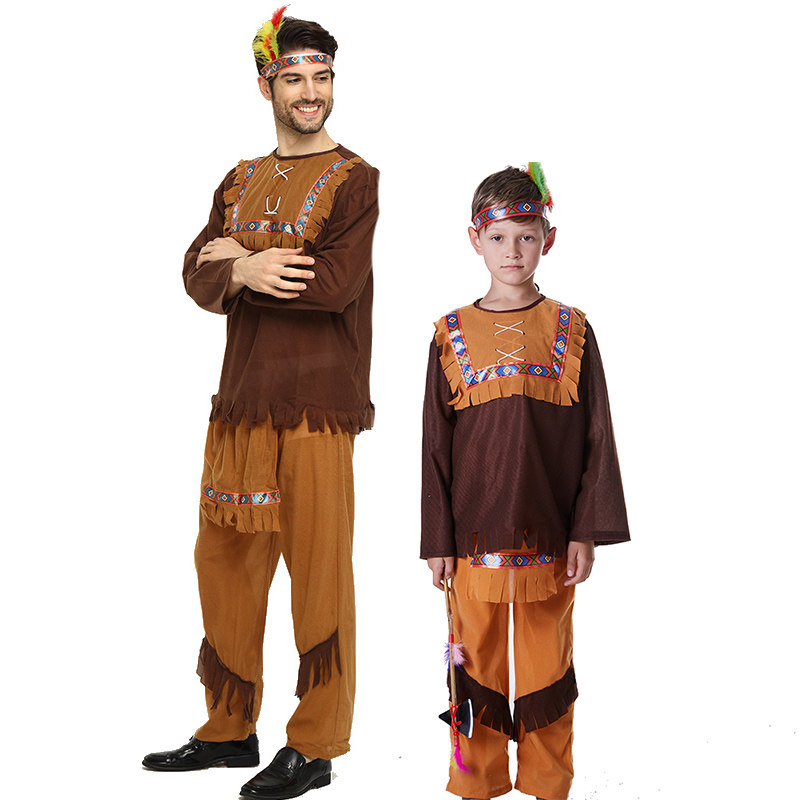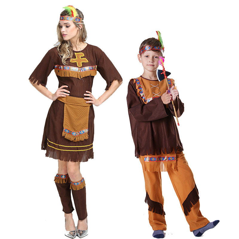 万圣节亲子服装cosplay成人印第安女儿童野人男土著人非洲原始人