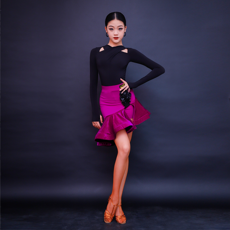 现货速发新款拉丁舞套装舞蹈练功服分体裙子大童长袖考级表演演出