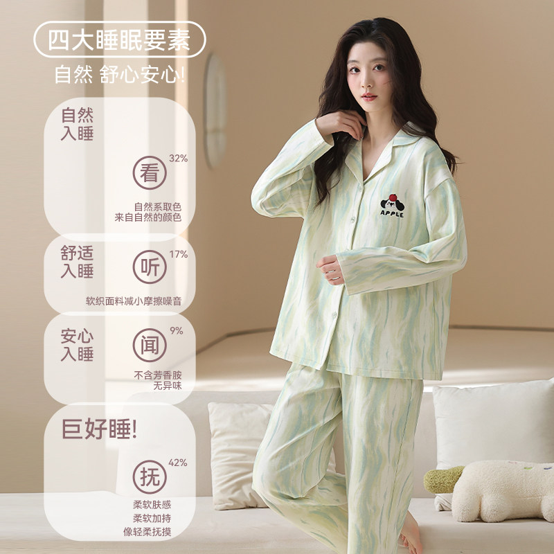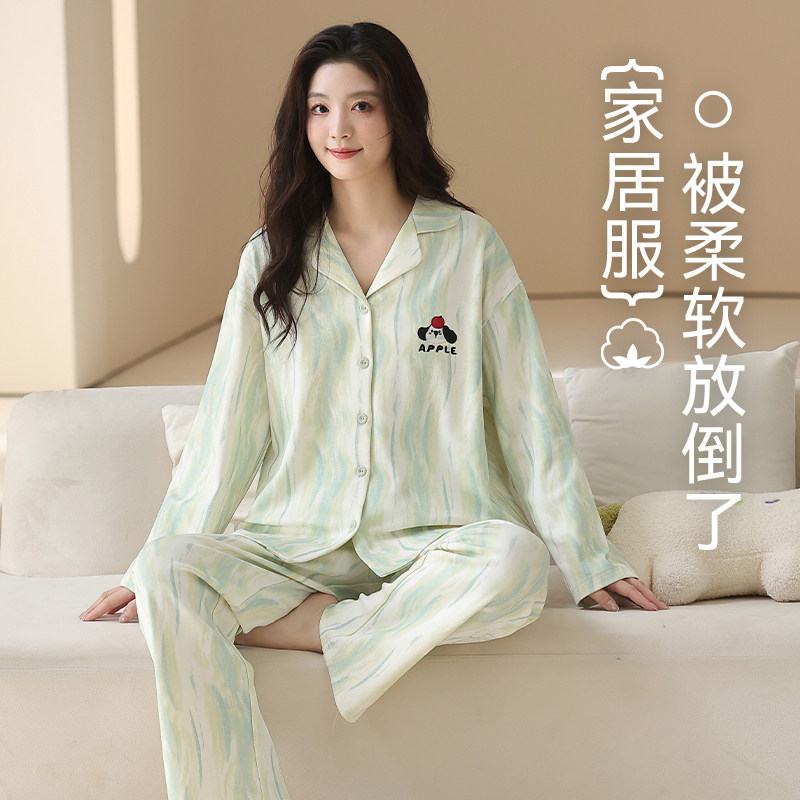 猫人纯棉女士睡衣女款2026新款秋冬季长袖全棉可外穿家居服套装