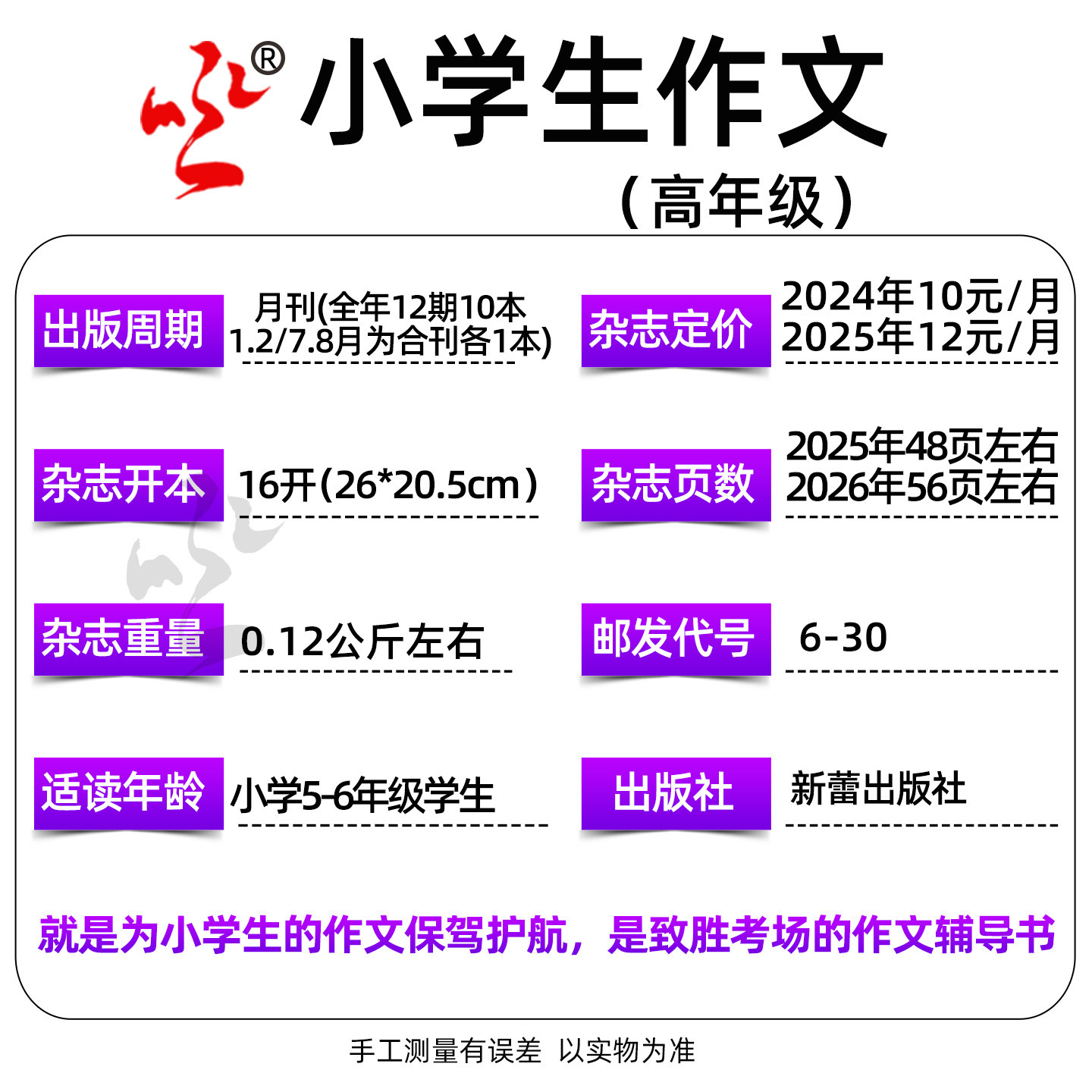 小学生作文杂志中高年级版2026年1-2/3月/2025年1-12月【全年/半年订阅】3456年级作文通讯作文素材实用文摘写作文学课外阅读过刊