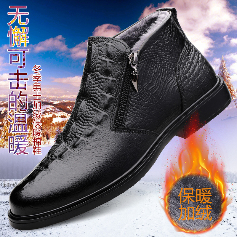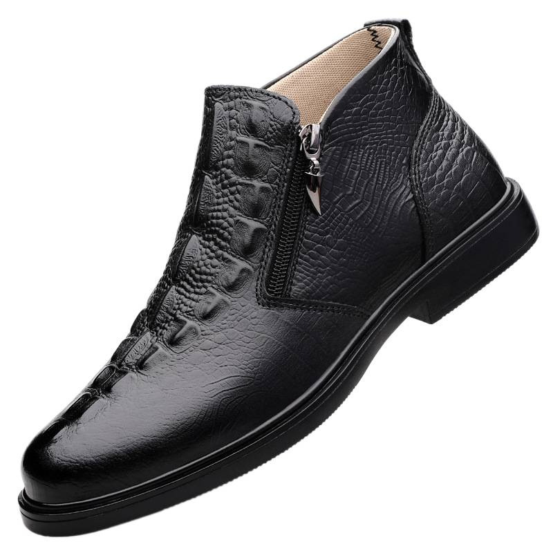 男鞋新款休闲皮鞋男软底潮流懒人鞋保暖加绒短靴中帮工装鞋马丁靴
