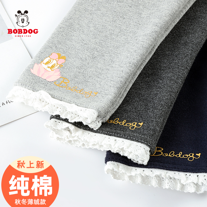 巴布豆女童裤子秋款薄绒春秋外穿洋气纯棉厚款儿童宝宝打底裤长裤