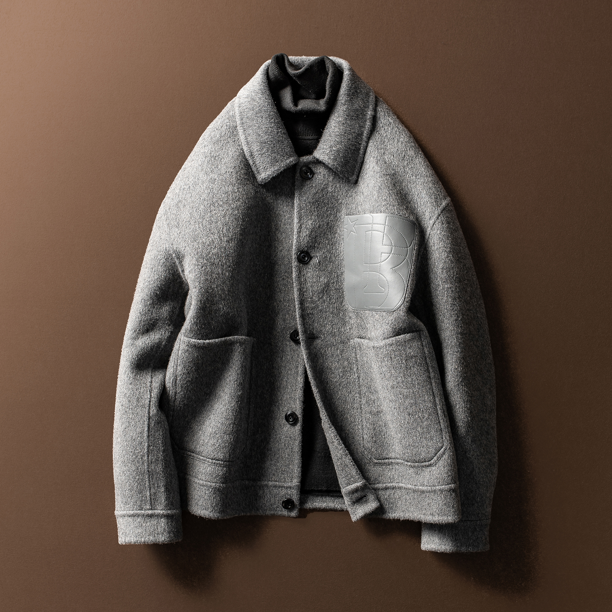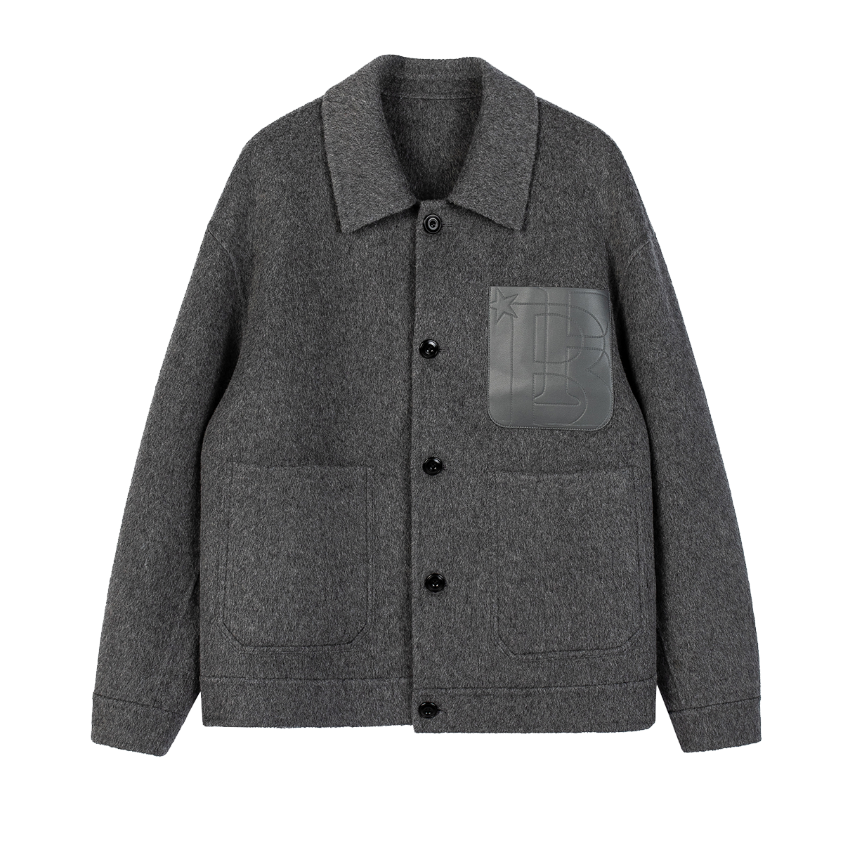 老钱风拼皮口袋翻领双面呢夹克男装秋冬宽松阔版短款羊毛呢子外套