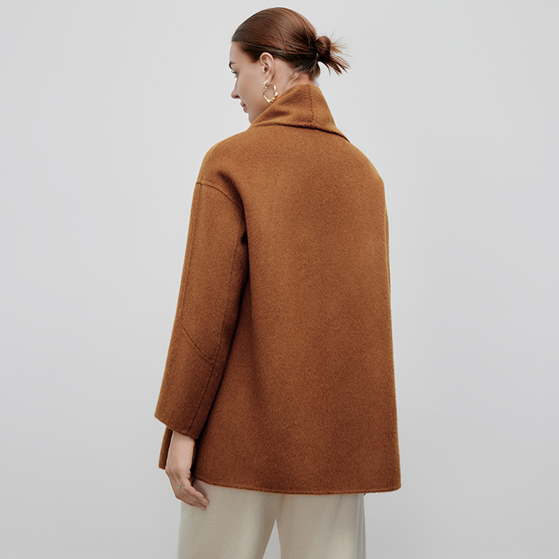 围脖手套大衣女款2025新款绵羊毛100%双面呢高级感短款宽松呢外套