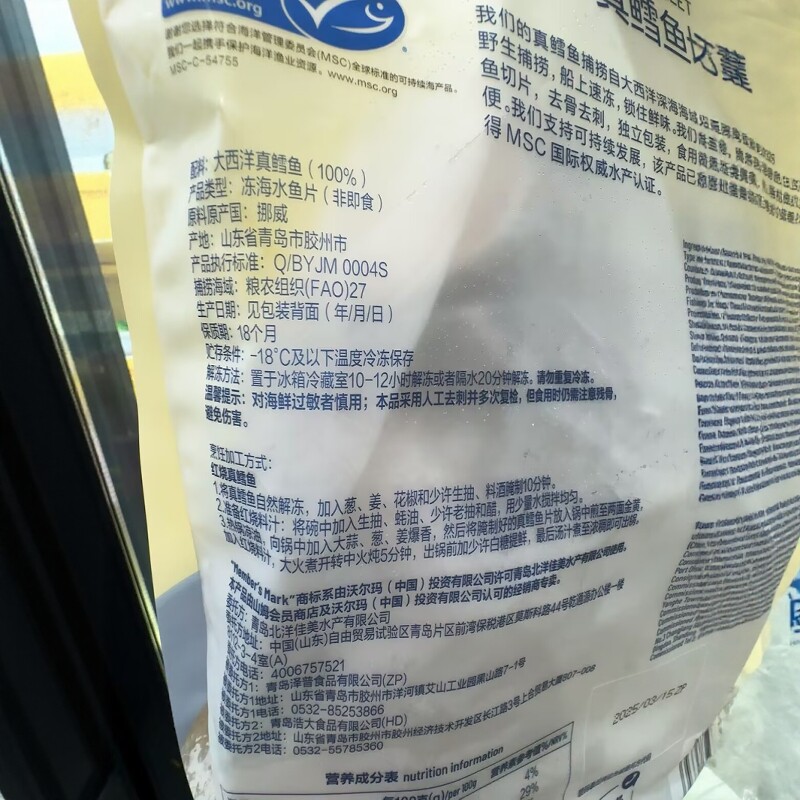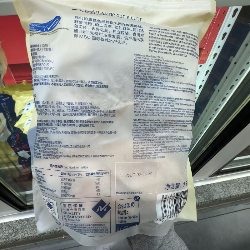 南京 山姆代购MM大西洋真鳕鱼切片1kg独立包装 顺丰干冰配送