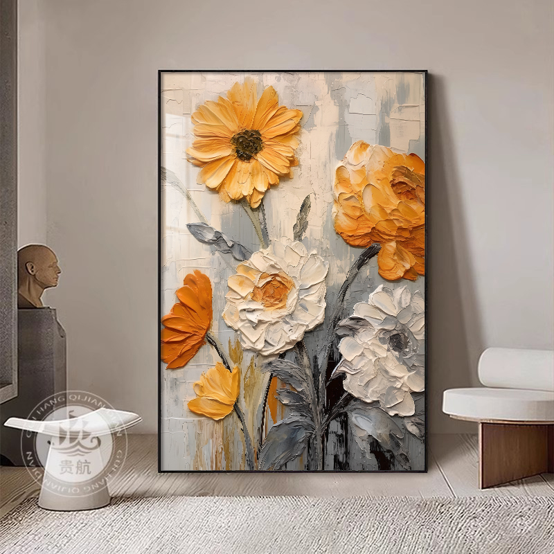 现代简约花卉客厅装饰画沙发背景墙落地画轻奢高级感餐厅玄关壁画