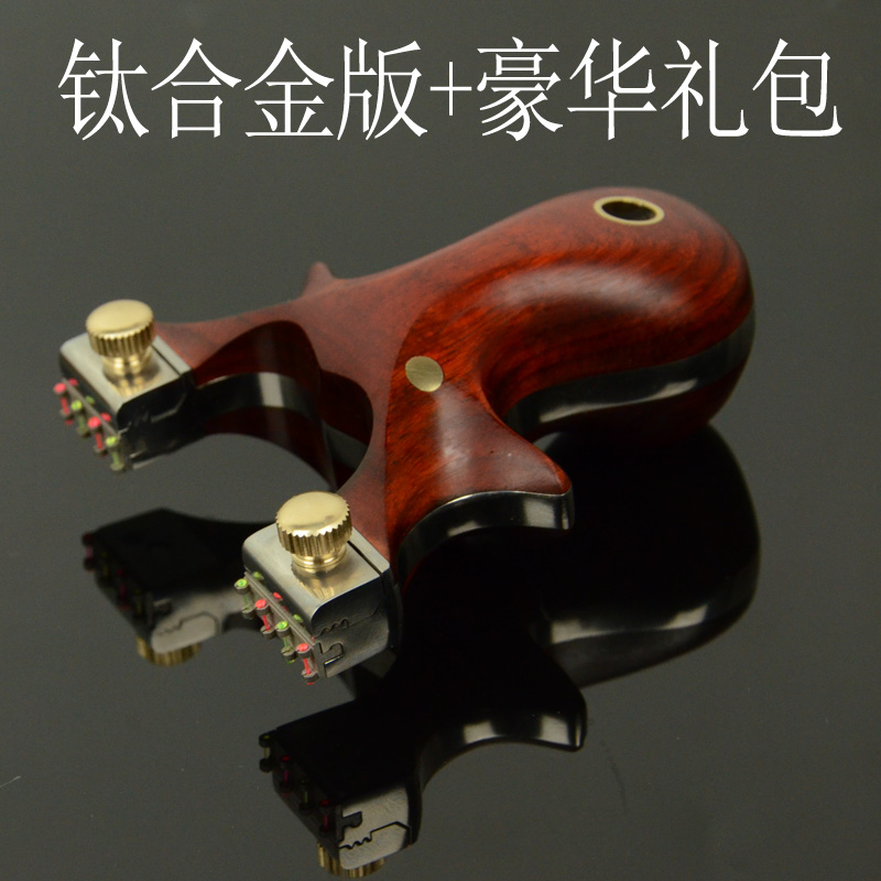 超凡公牛弹弓比赛精准光纤瞄扁皮弓犀牛角紫檀调瞄不锈钢夹片免绑