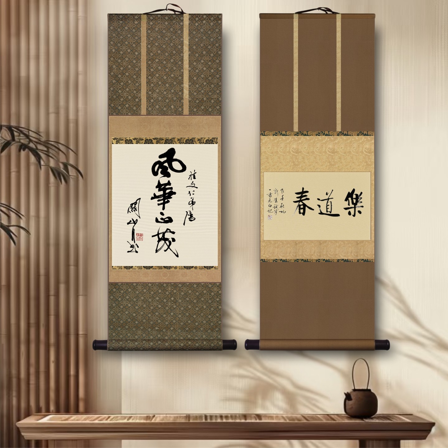 艺墨轩宣纸仿古空白宋式禅意书法卷轴中堂挂画高档绢布微喷古画宣和裱文创挂轴半生半熟毛笔字创作免装裱批发