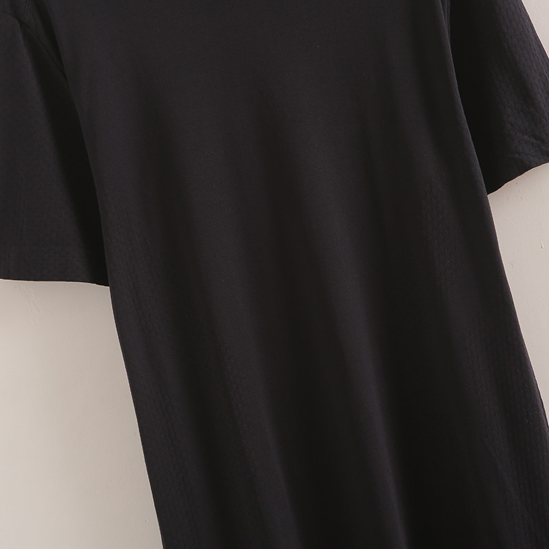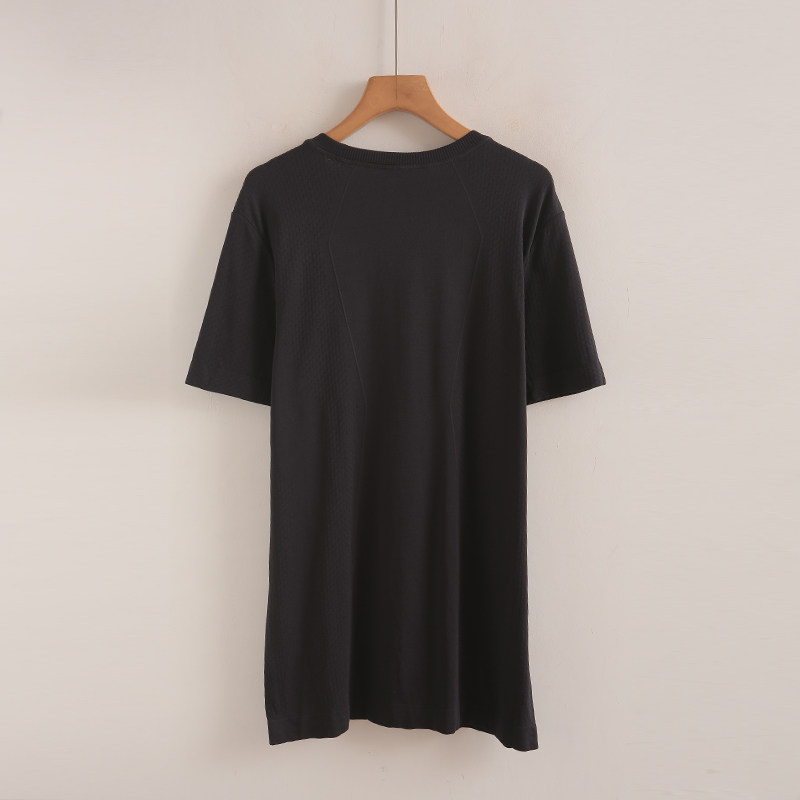 黑色中长款t恤女夏遮屁股短袖2025新款宽松运动纯色长款大码上衣