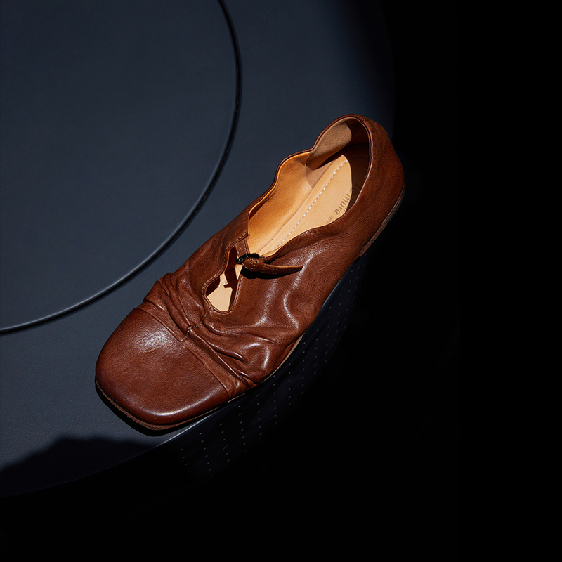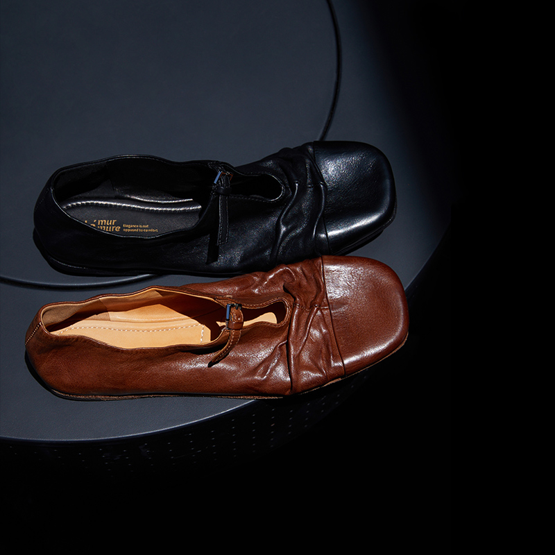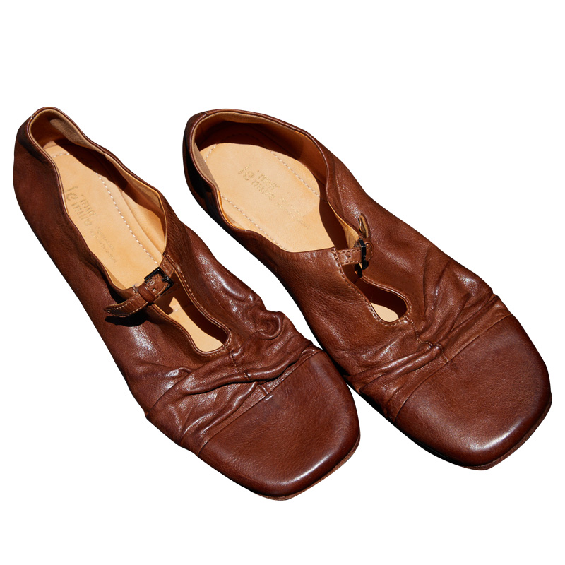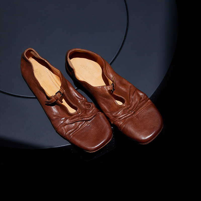 Le' Murmure 意式盐缩皱牛皮 重工水洗植鞣捏褶 一脚蹬懒人单鞋女