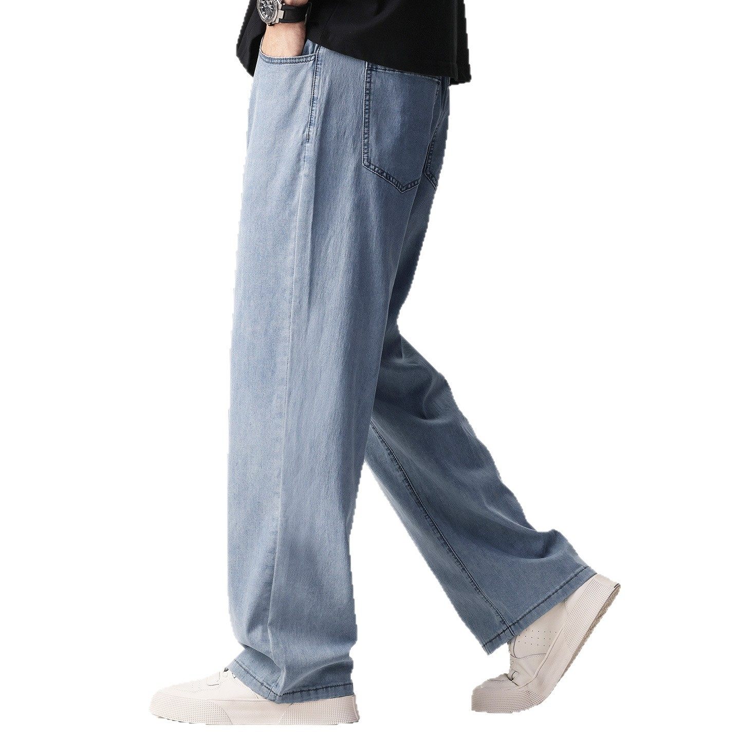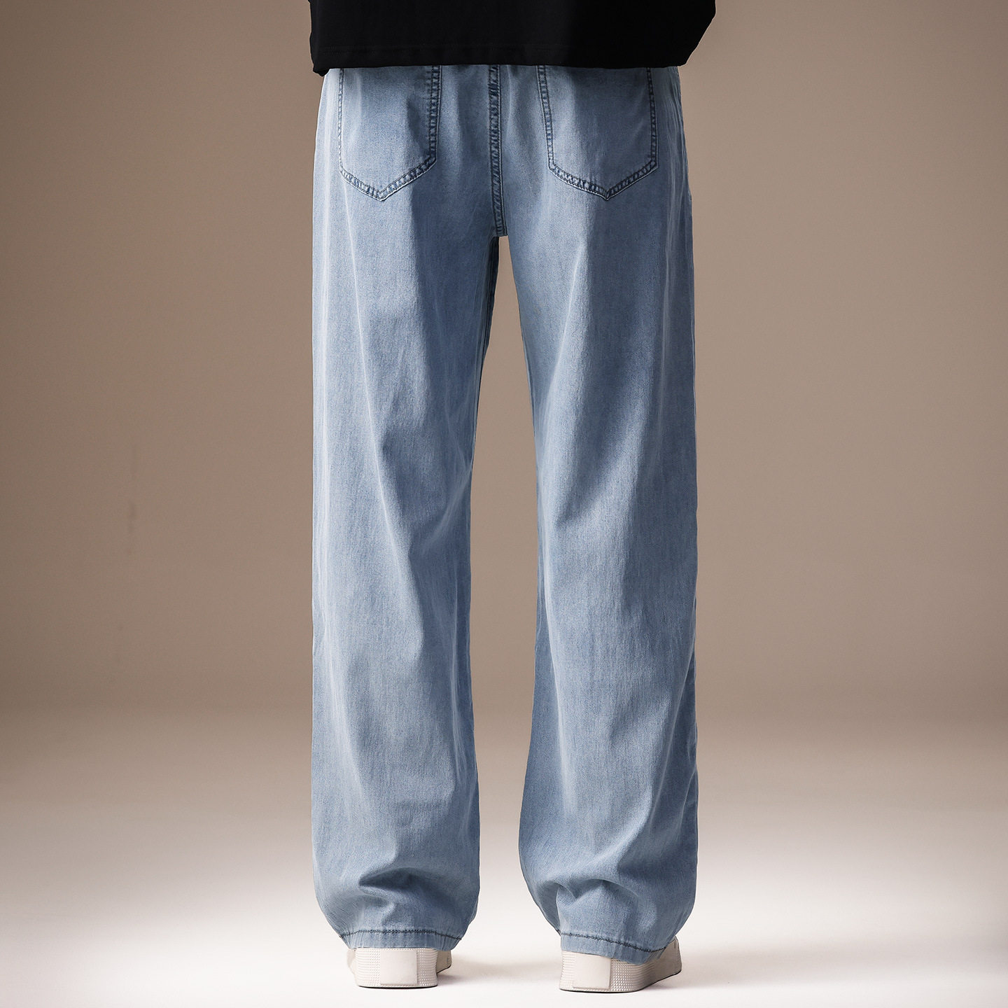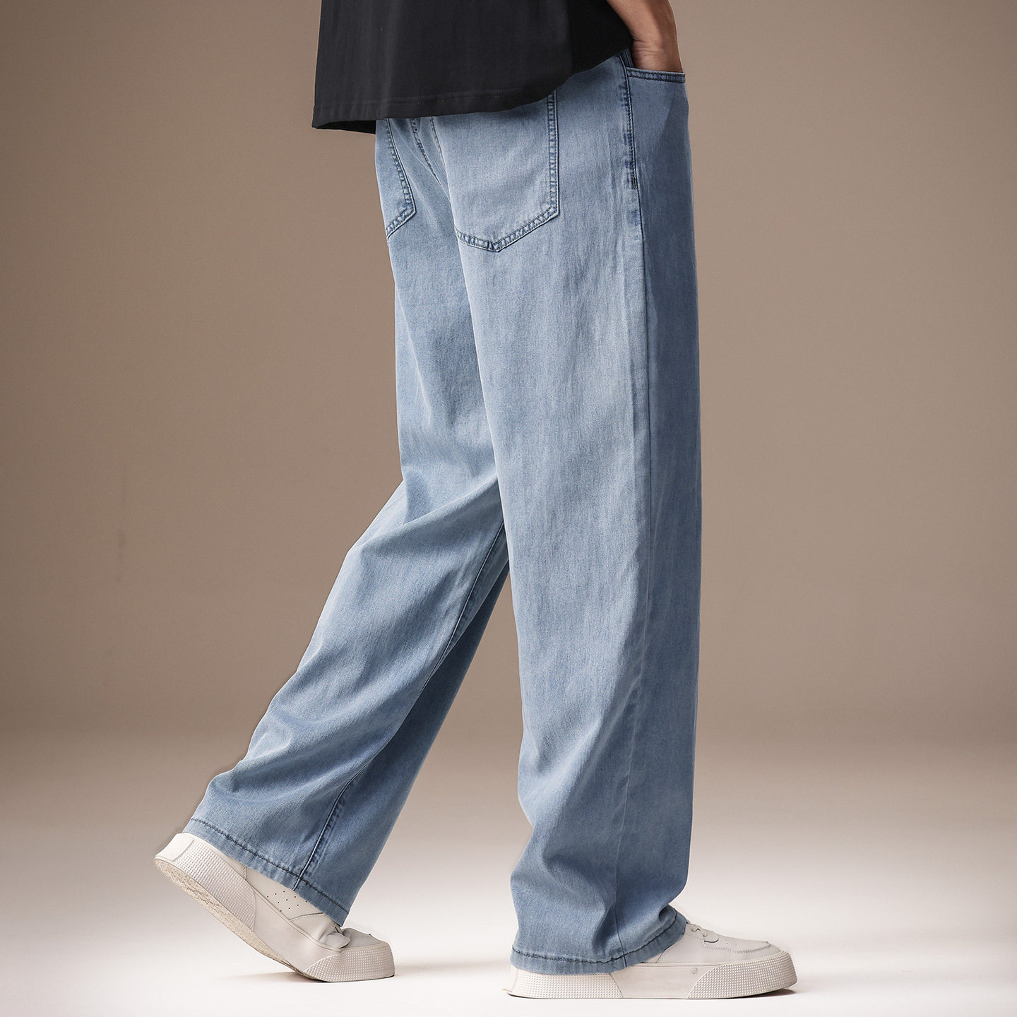 高端天丝莱赛尔男士牛仔裤夏季薄款直筒宽松阔腿垂坠感休闲裤子男