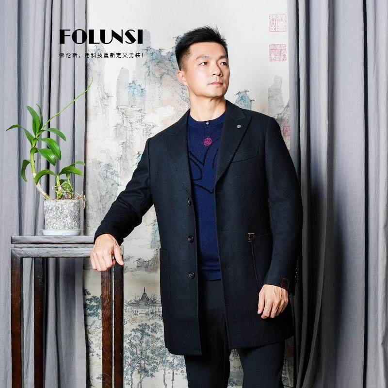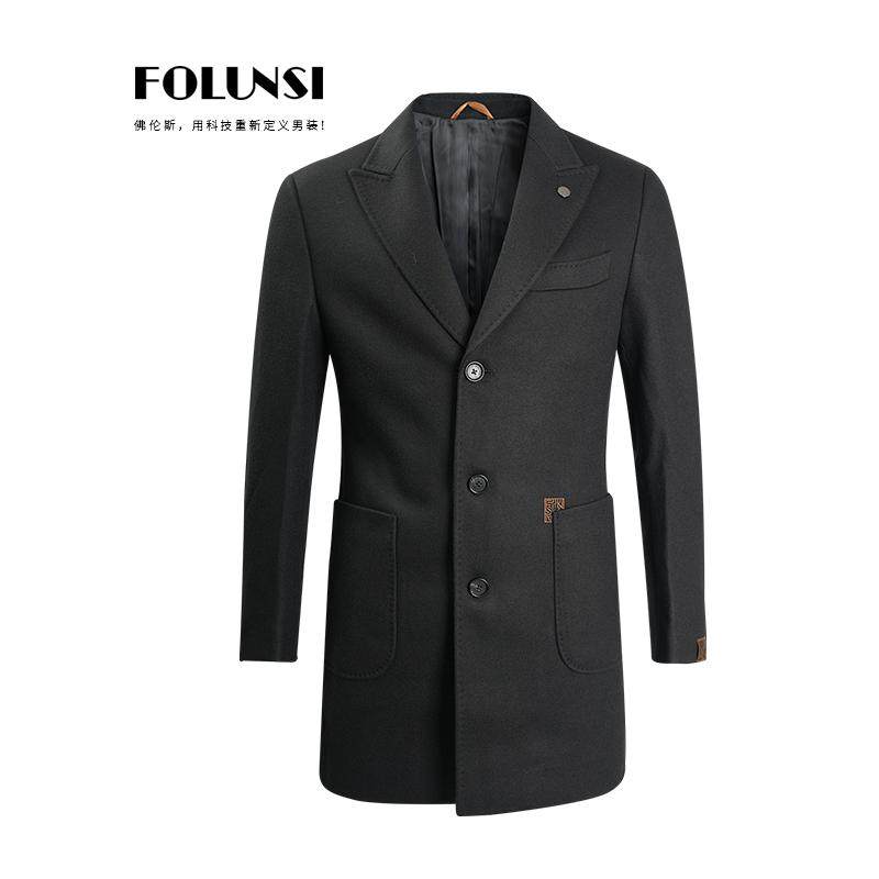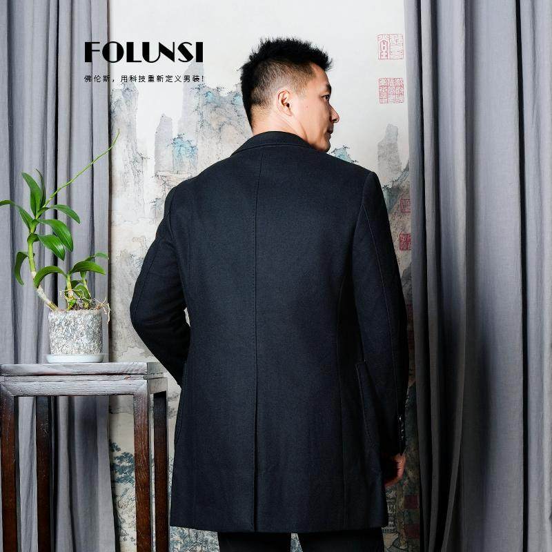 佛伦斯FOLUNSI男装大衣外套男秋冬款高端羊毛男士商务休闲上衣