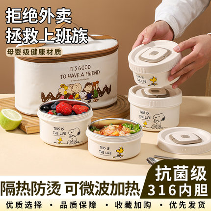 史努比保温饭盒316不锈钢上班族可微波炉加热专用带饭餐盒便当盒