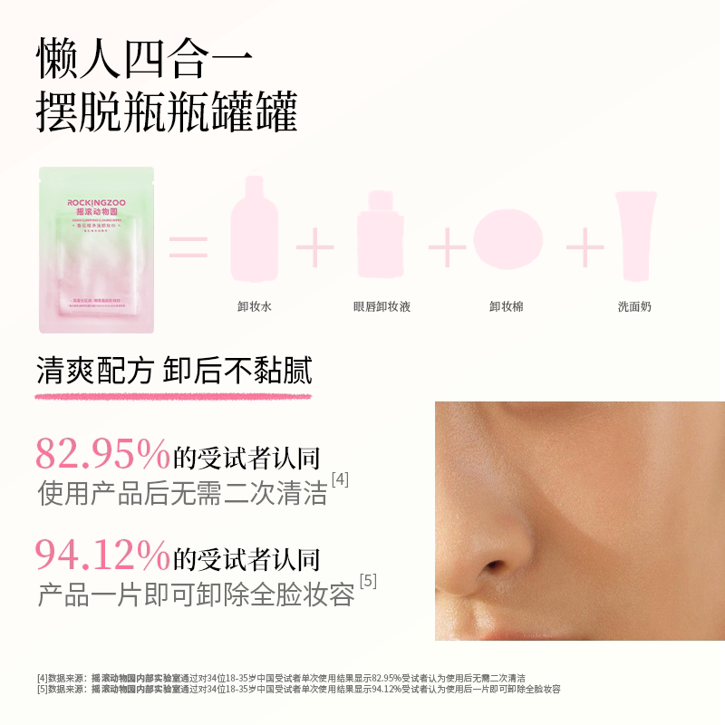 【便携卸妆】摇滚动物园芭乐卸妆湿巾独立包装温和清洁控油4合1