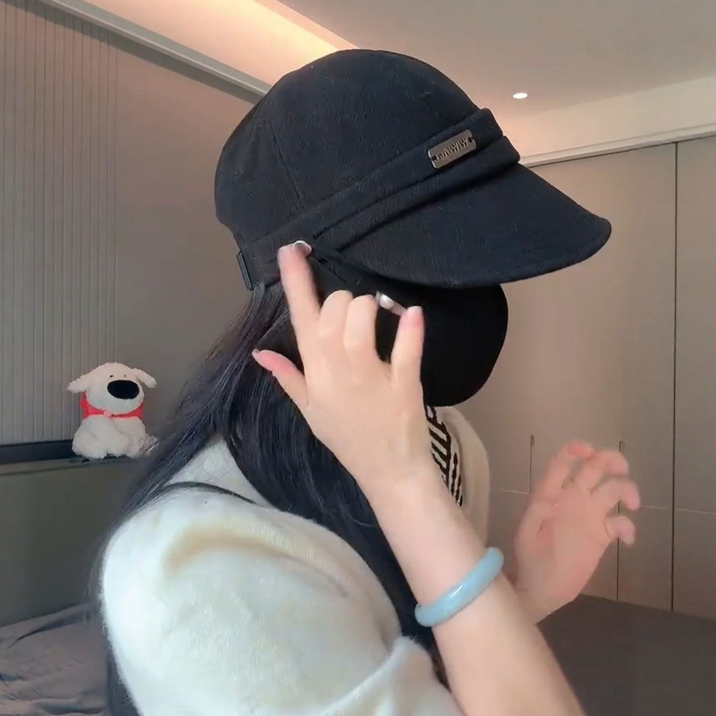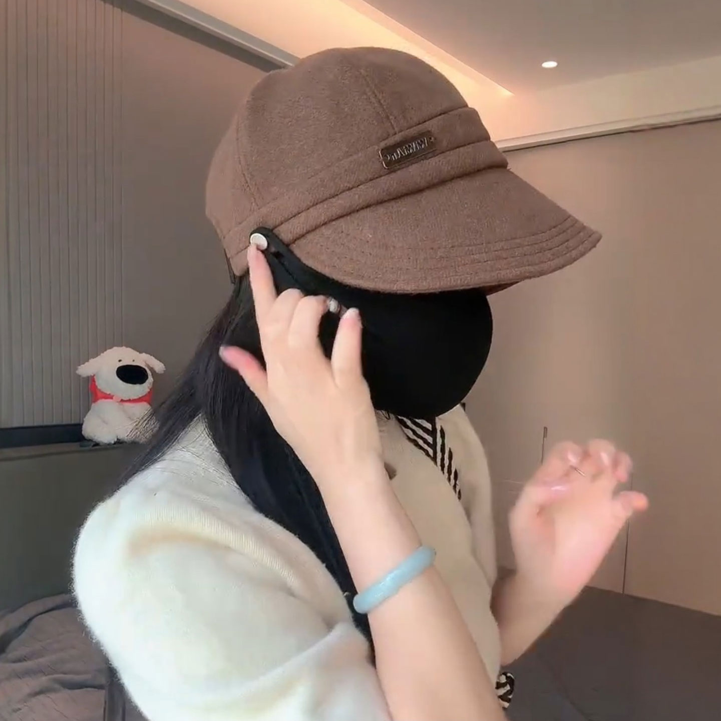 可挂口罩鸭舌帽女显脸小大帽檐渔夫帽秋冬季户外骑车不翻遮阳帽女