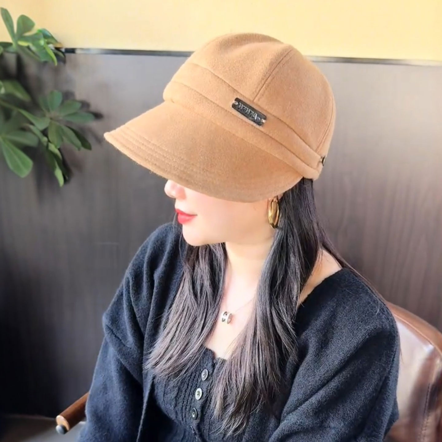 可挂口罩鸭舌帽女秋冬百搭渔夫帽