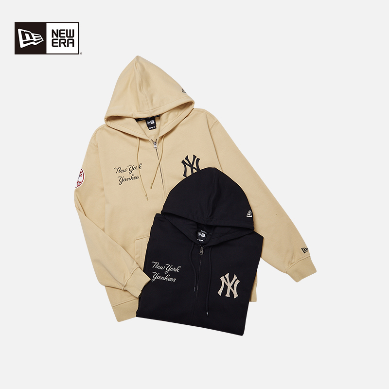 New Era纽亦华秋冬新款MLB美式连帽卫衣拉链外套NY针织毛圈复古潮