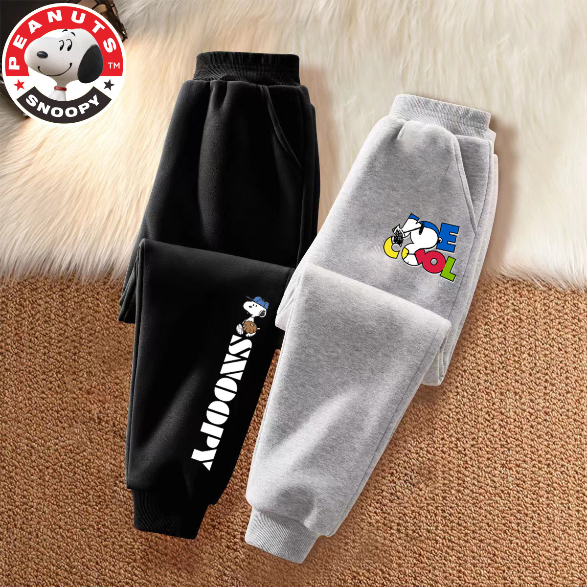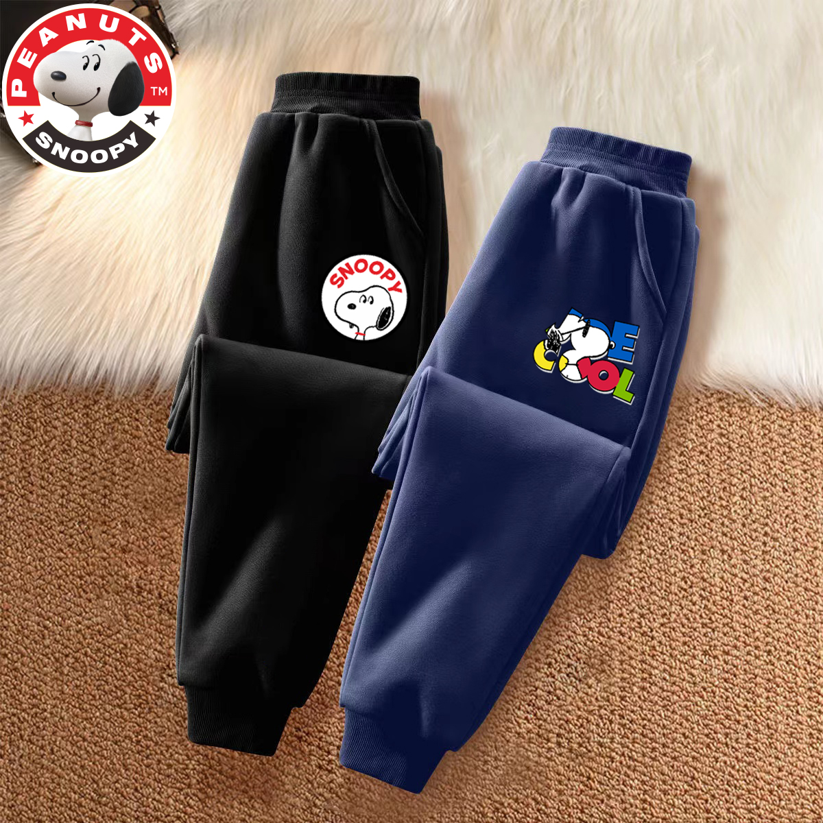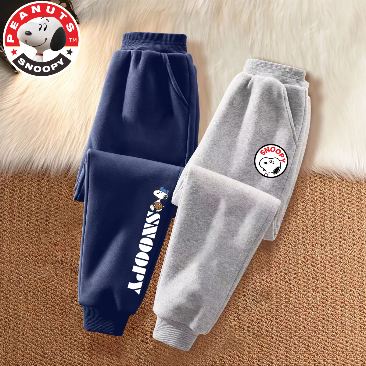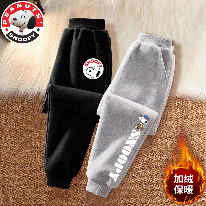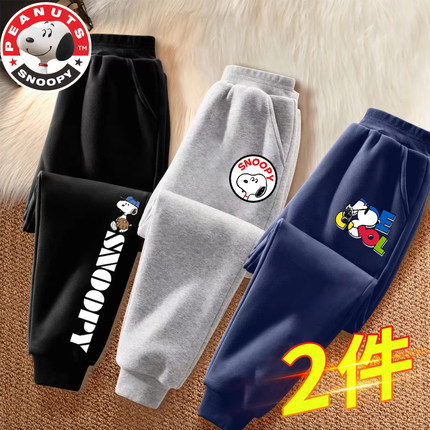 史努比男孩裤子秋季卫裤新款男童运动裤宽松版儿童加绒长裤春秋款
