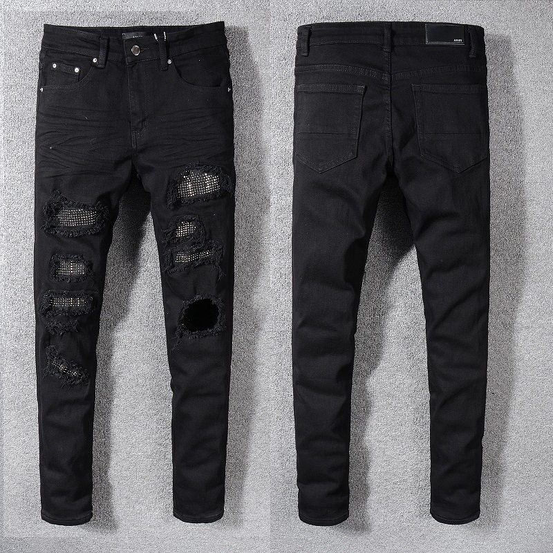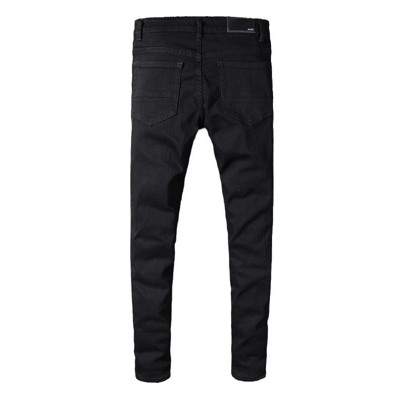 2023跨境美式高街潮牌时尚黑色破洞牛仔裤男烫钻弹力修身小脚裤潮
