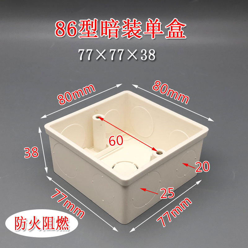 联塑阻燃PVC暗装单底盒77*77*38暗线86型通用开关插座接线盒子