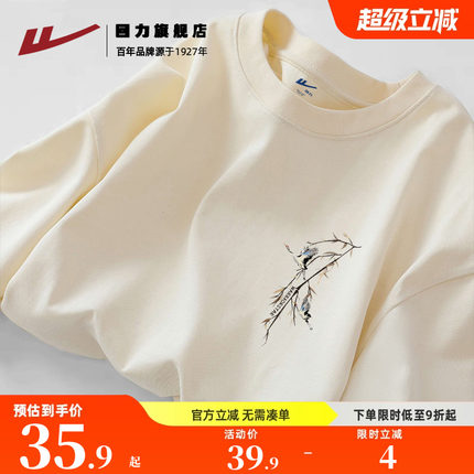 回力国潮t恤男短袖夏季新款纯棉打底衫宽松体恤男生竹子印花上衣K