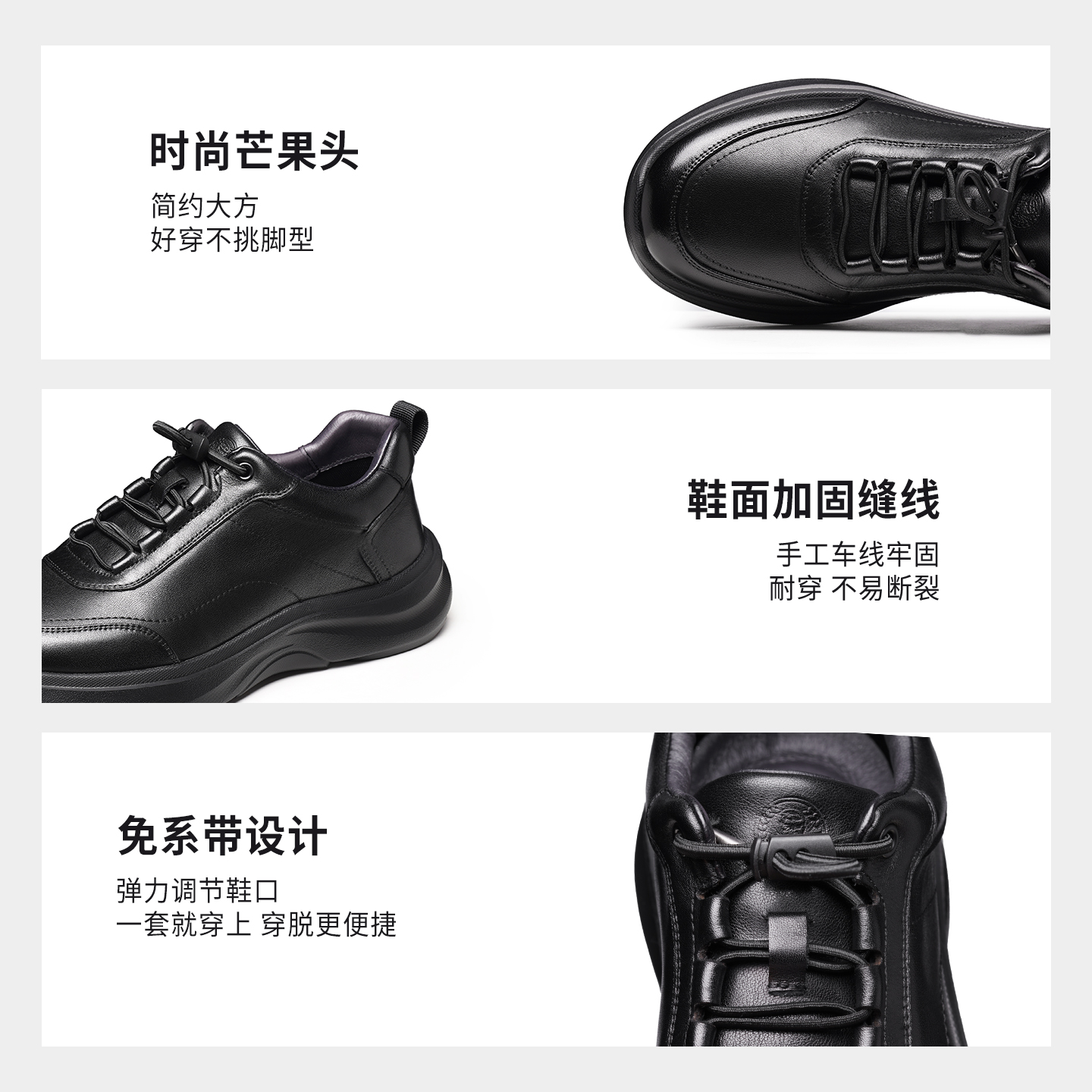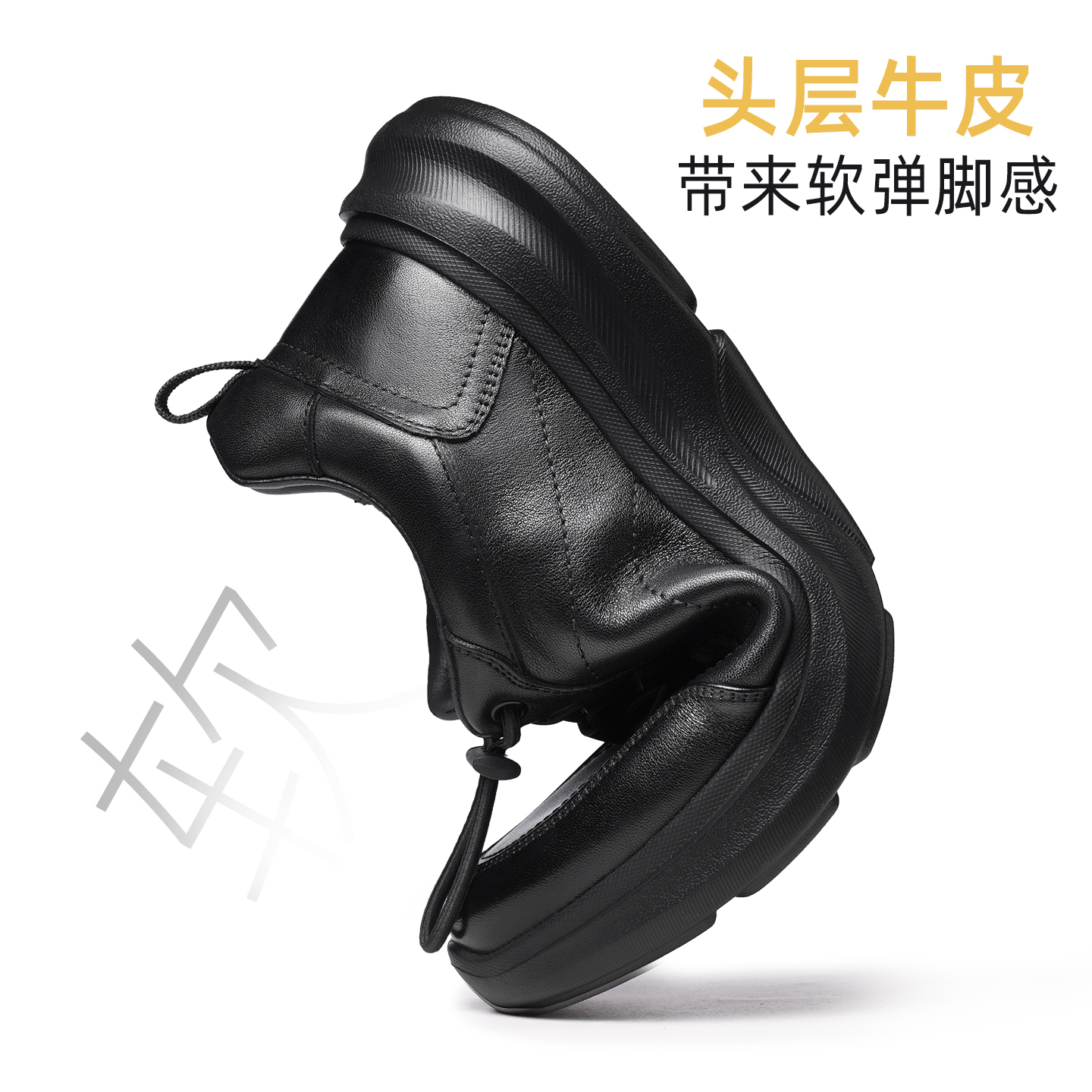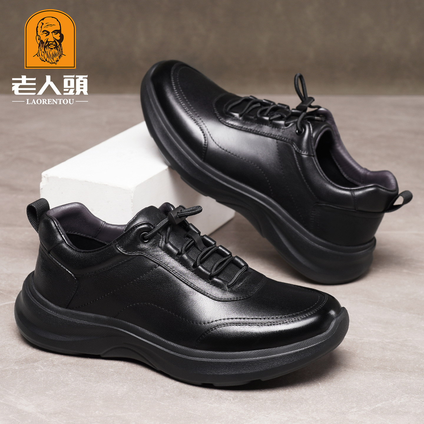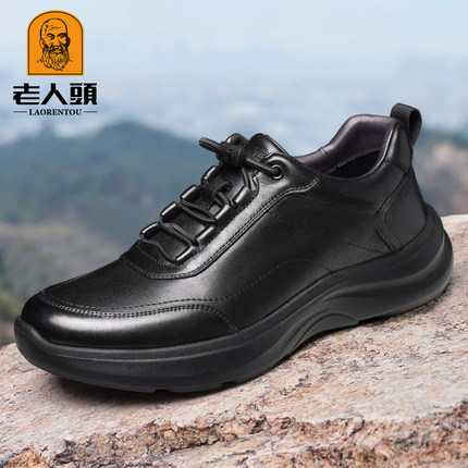 老人头真牛皮厚底增高运动休闲鞋