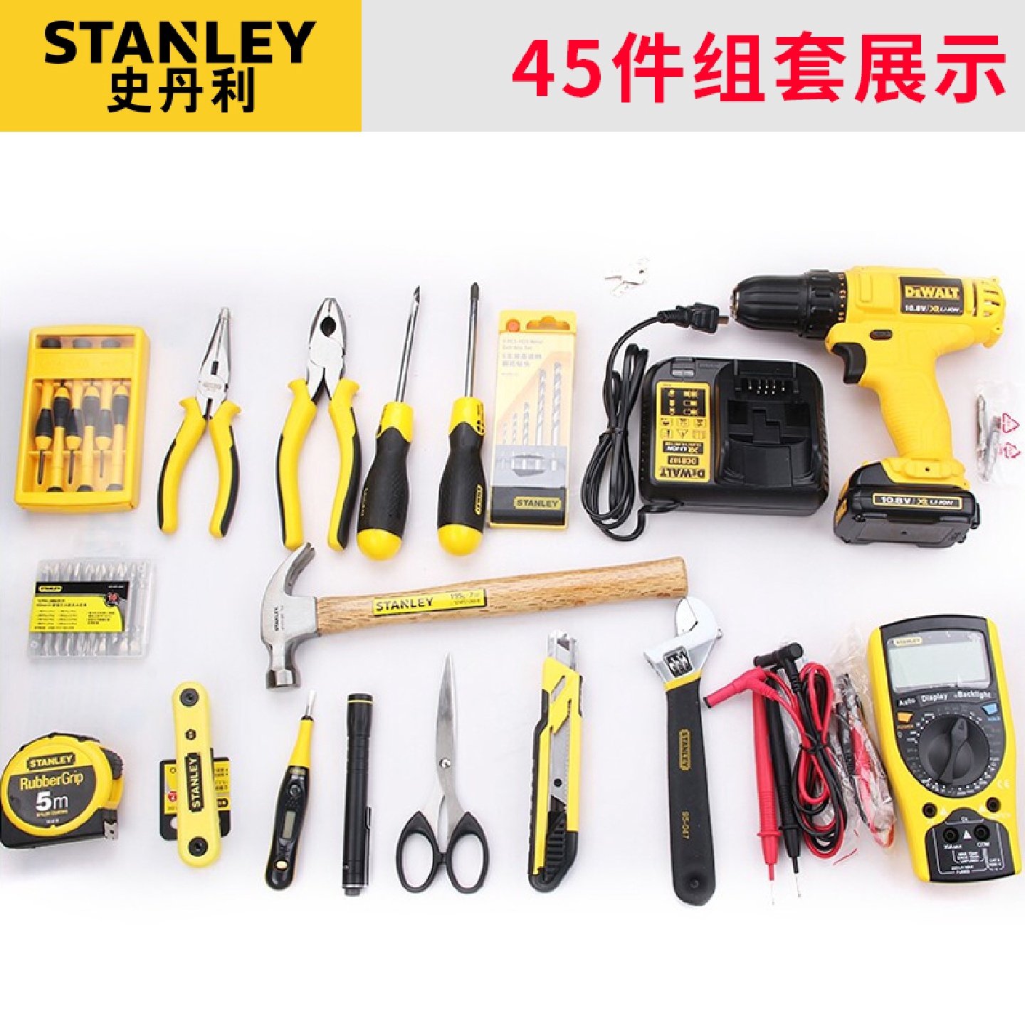 史丹利锂电钻家用多功能工具套装电工专用工具箱电钻组套大全专业