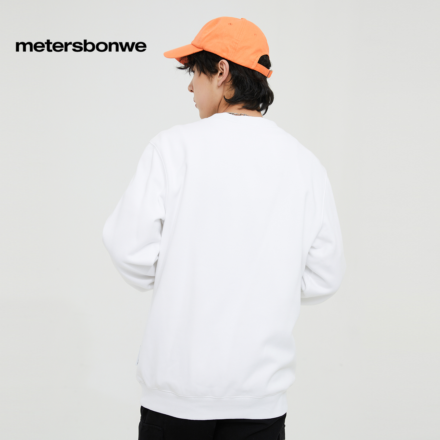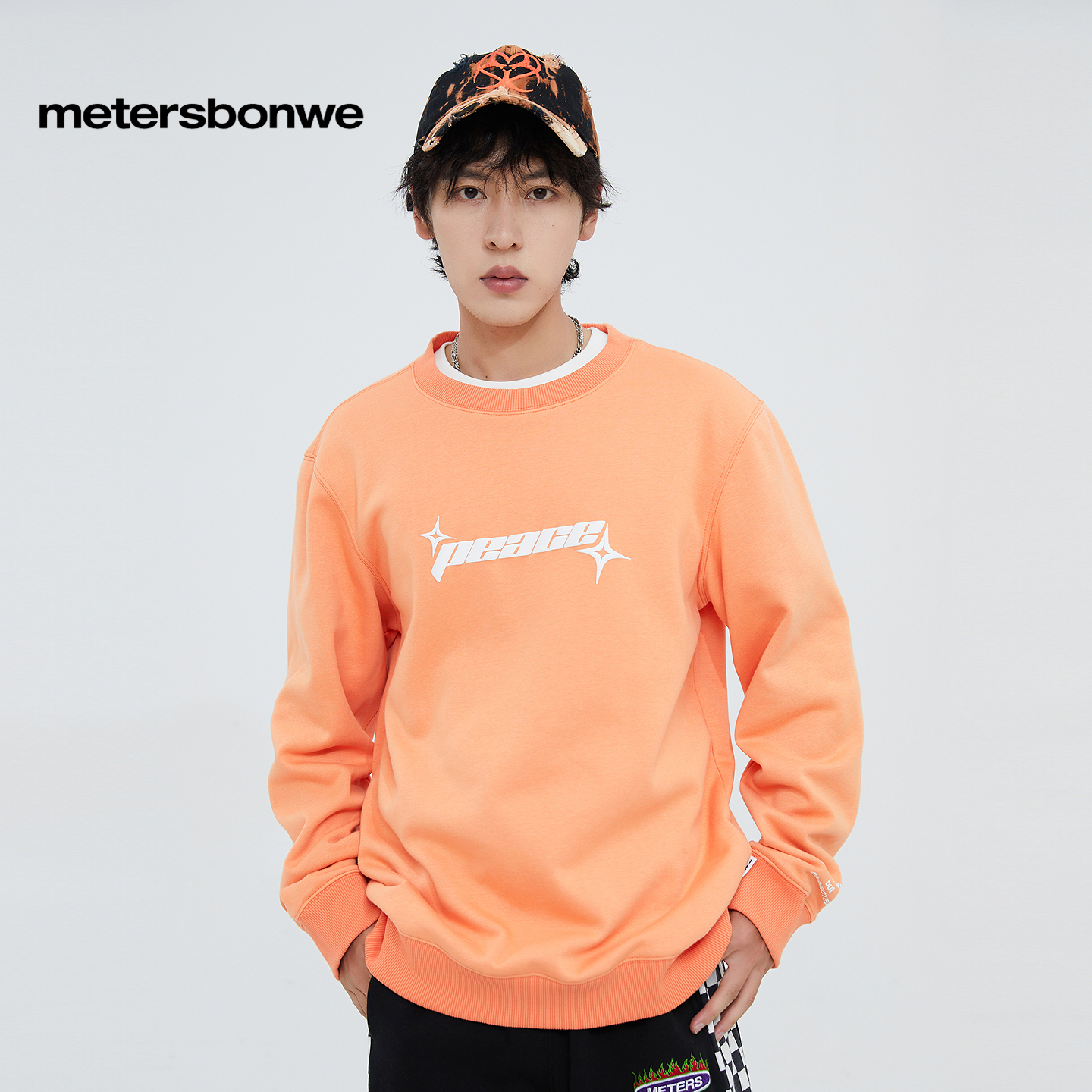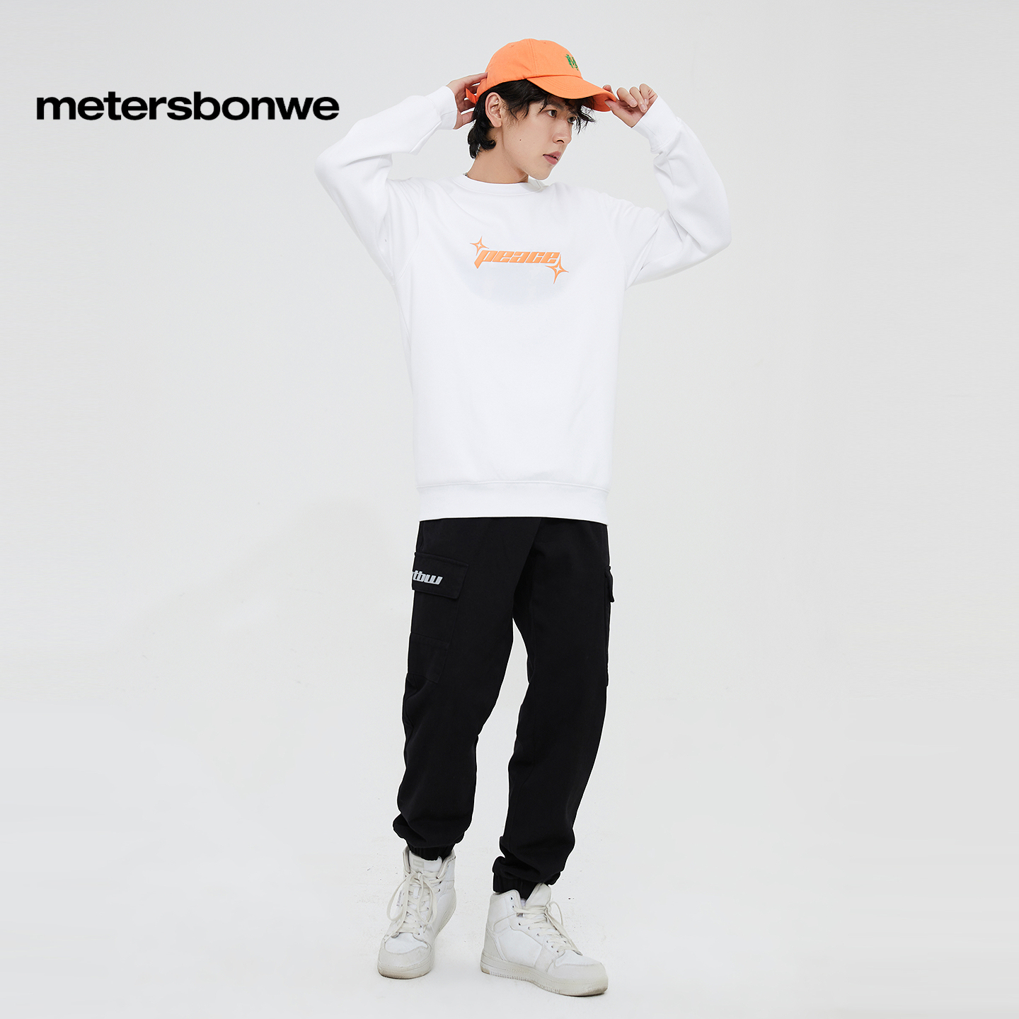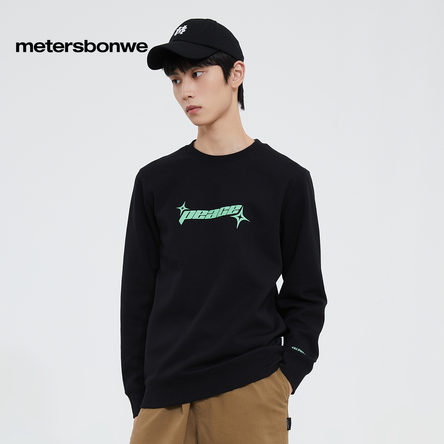 美特斯邦威针织套头衫男秋冬前胸彩色字母印花加绒保暖圆领卫衣