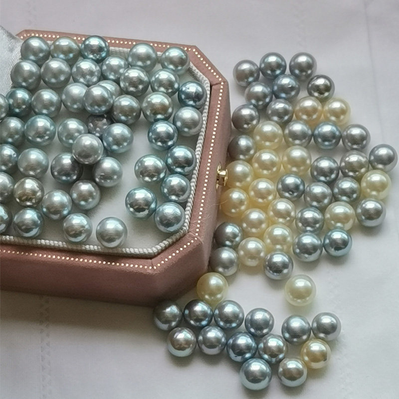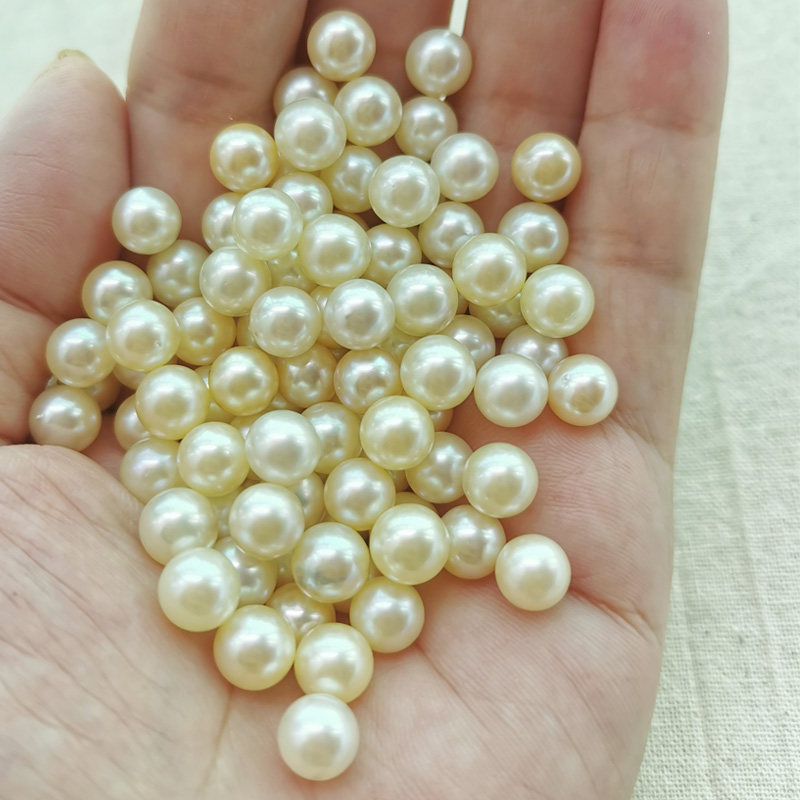 国产akoya天然海水珍珠散珠单颗真多麻羽皇金DIY耳钉吊坠戒指耳环