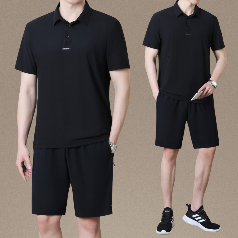 爸爸夏装套装时尚男士短袖t恤2025新款中老年运动休闲父亲节衣服