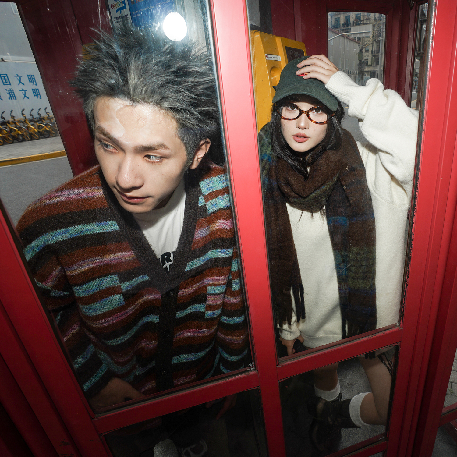 GOGOSOON毛衣男秋冬新款开衫外套长驼马海毛潮牌撞色针织Q