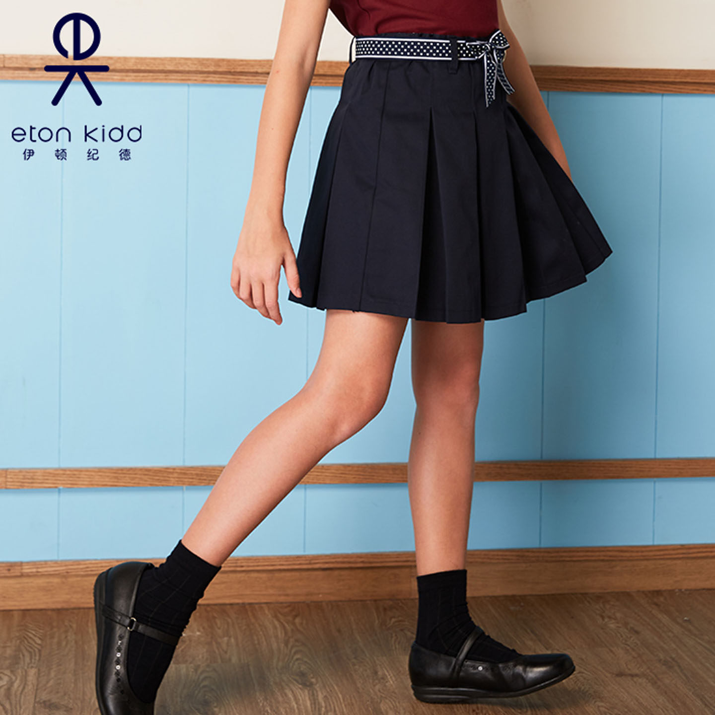 伊顿纪德女童卡其色百褶裙儿童藏青色短裙小学生校服半身裙10Q262