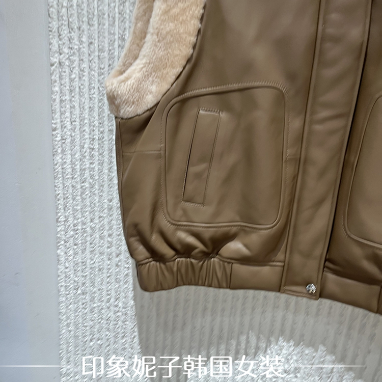 欧洲站2025冬季新款 时尚个性翻领短款拼接鹅绒皮衣马甲外套DK583