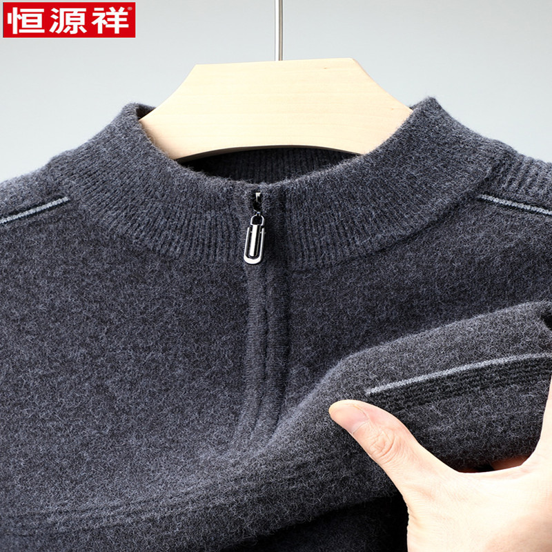 恒源祥100纯羊绒衫男拉链半高领冬季加厚毛衣男士针织打底羊毛衫