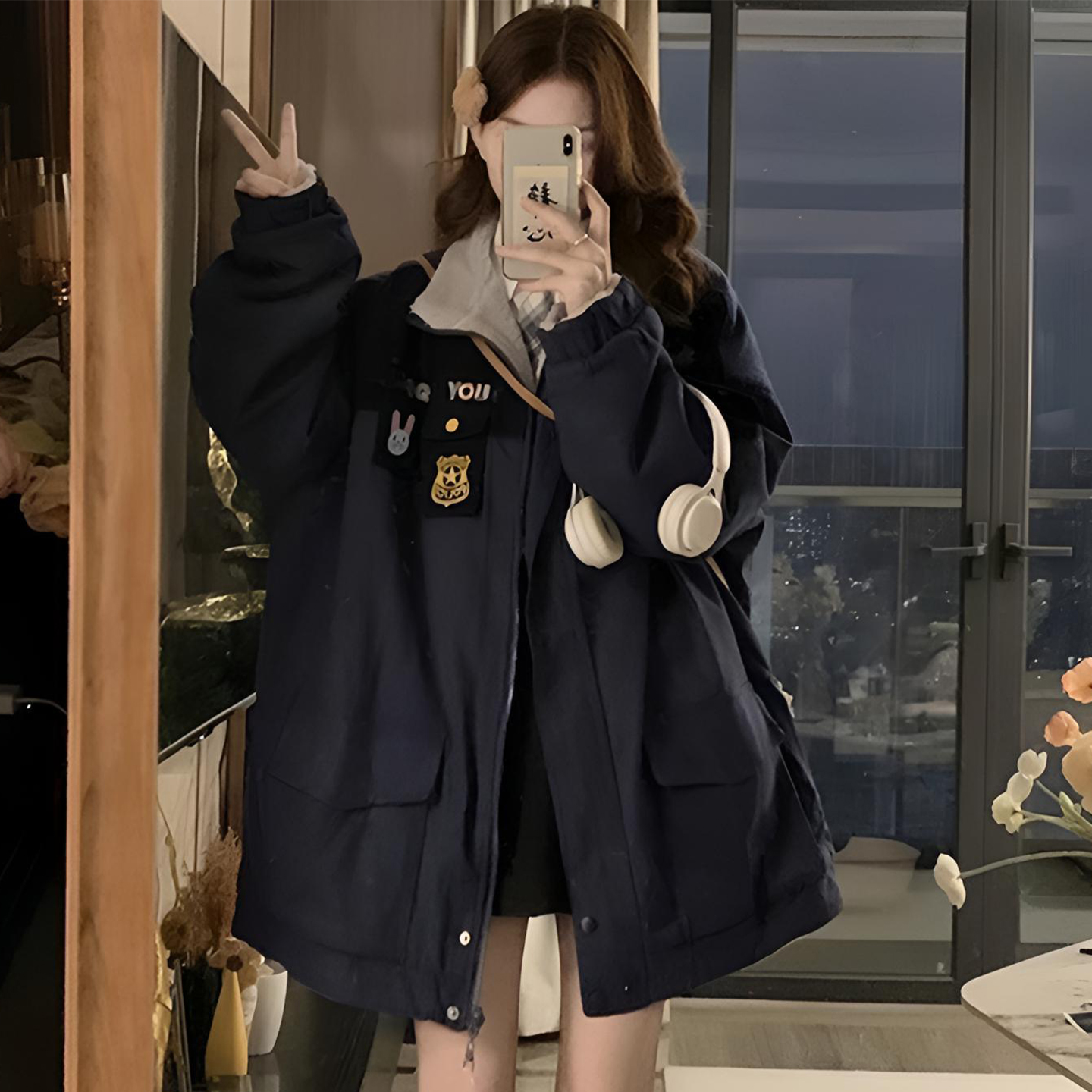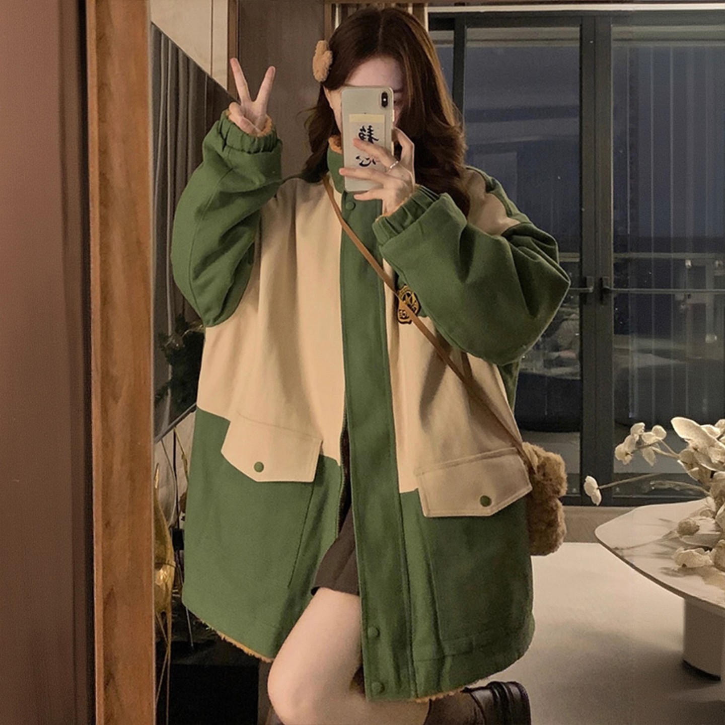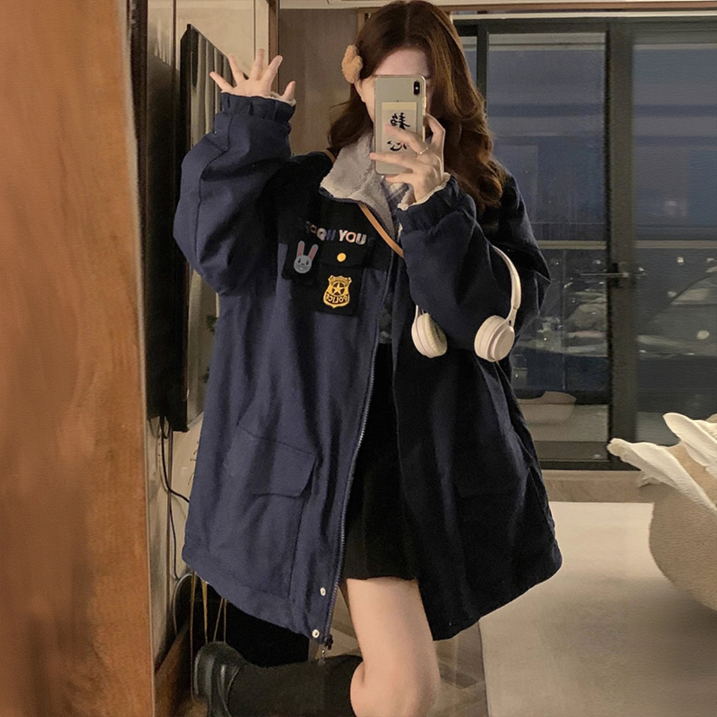 300斤特大码学院风双面穿冲锋衣外套女冬季胖mm加厚保暖棉服上衣