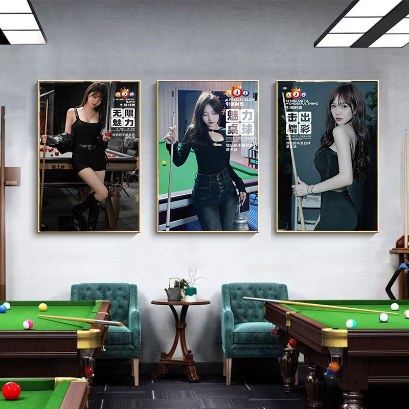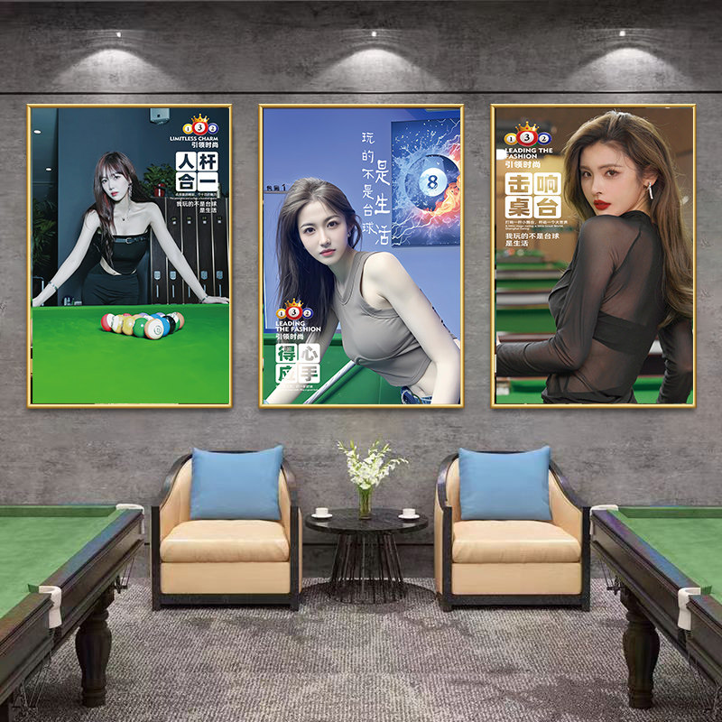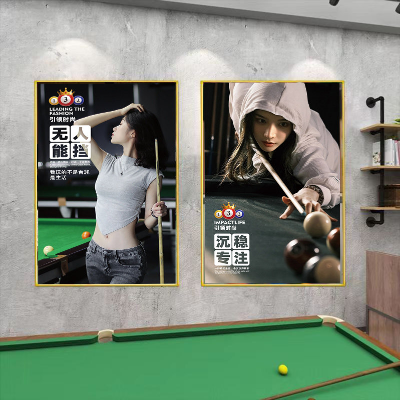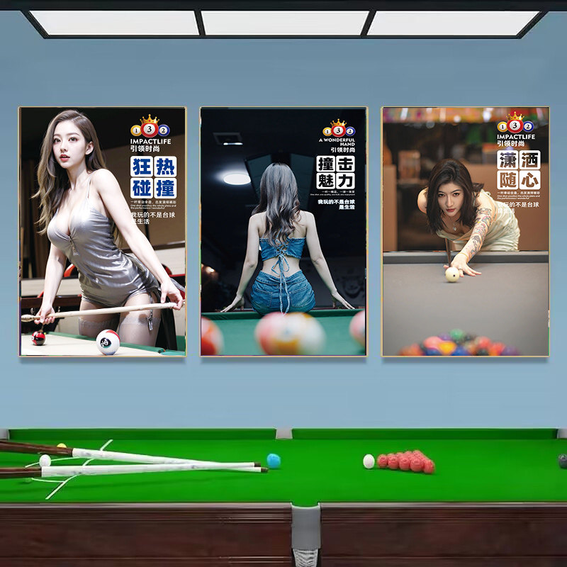 台球厅装饰画桌球室美女广告海报墙贴台球俱乐部氛围超清壁纸KT板