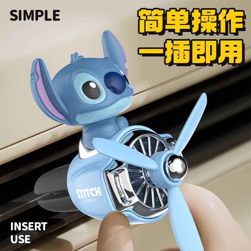 玩味车载香薰2025新款迪士尼史迪仔草莓熊小飞机空调出风口摆件