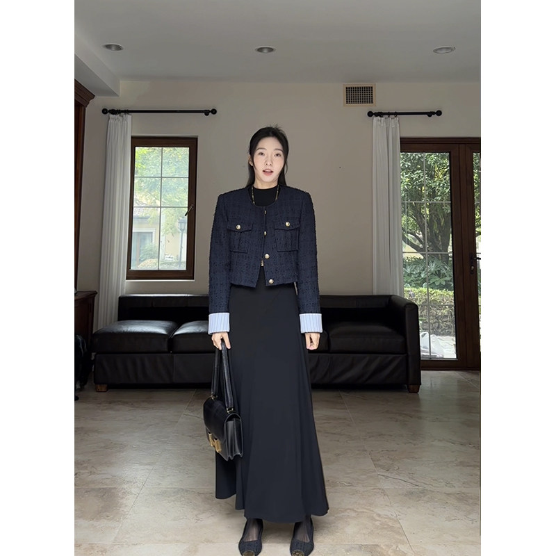 郭九九呢内搭打底小黑裙连衣裙