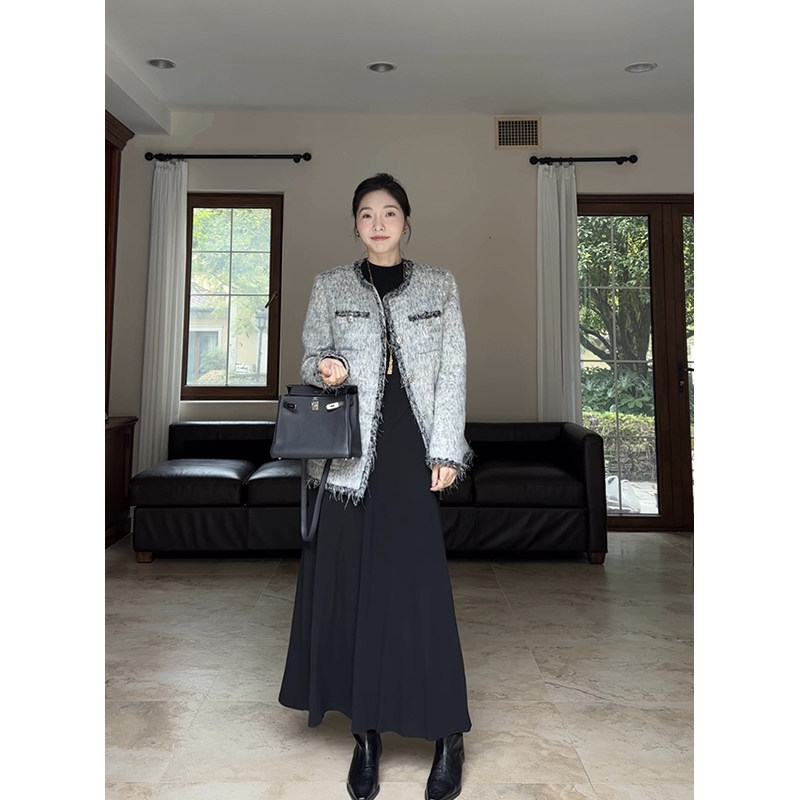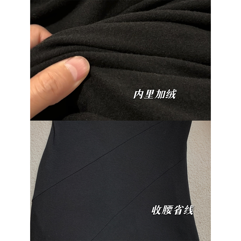郭九九呢 加绒经典极简收腰中领内搭打底小黑裙女冬季长款连衣裙