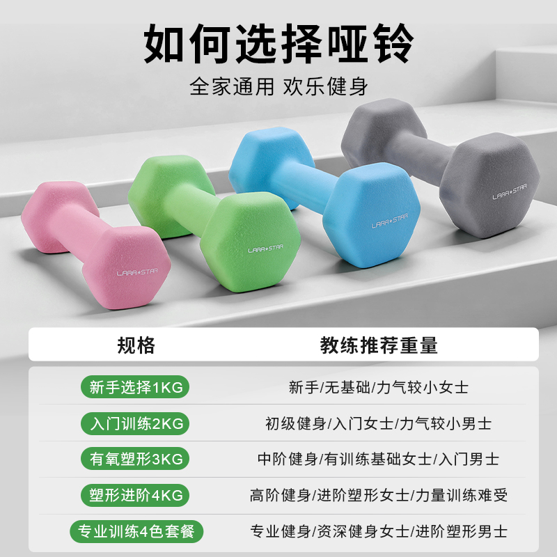 劳拉之星3052健身小哑铃健身家用塑形手臂浸塑六角哑铃男女儿童