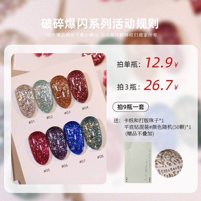欧琳汀美甲破碎爆闪返潮复古甲油胶网红同款显白流行色指甲亮片胶