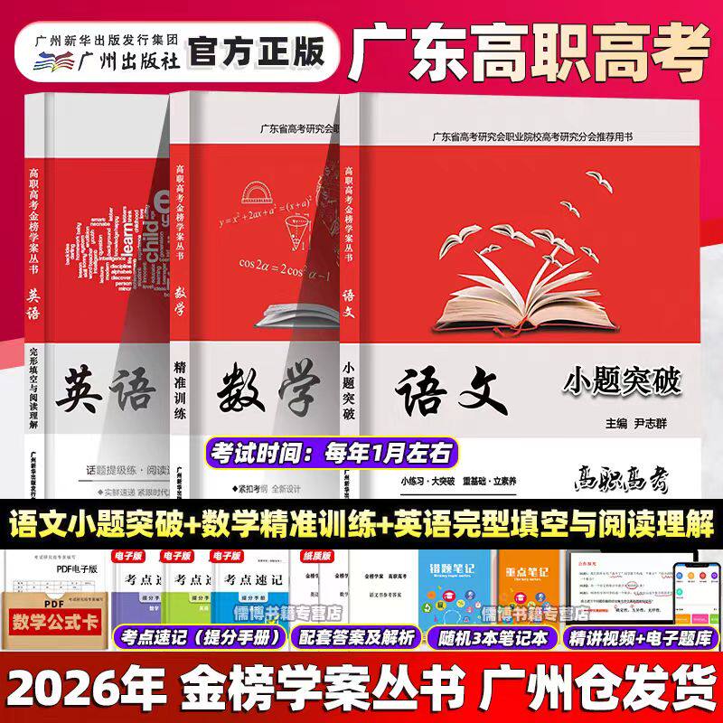 正版2026年广东省高职高考3+证书招生考试复习教材语文数学英金榜学案+测试配套中职生对口升学单招高考复习教材用书华南理工大学