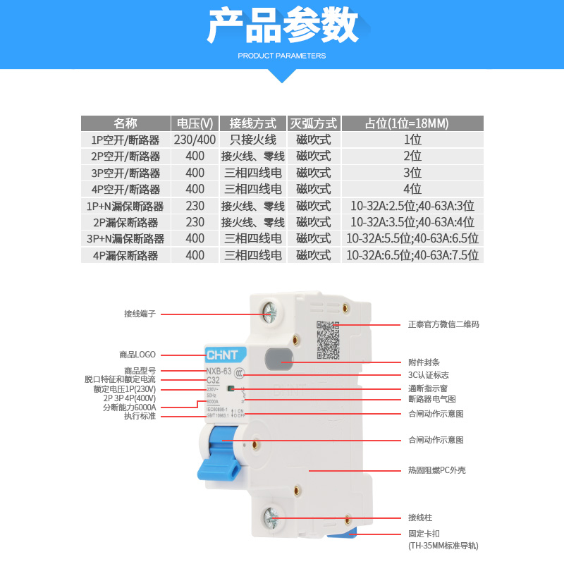 正泰NXB空气开关小型断路器总开电闸100A空开1P 2P 3P4p125a DZ47