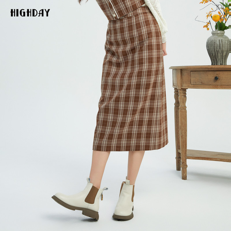 轩日复古格纹中长裙半身裙