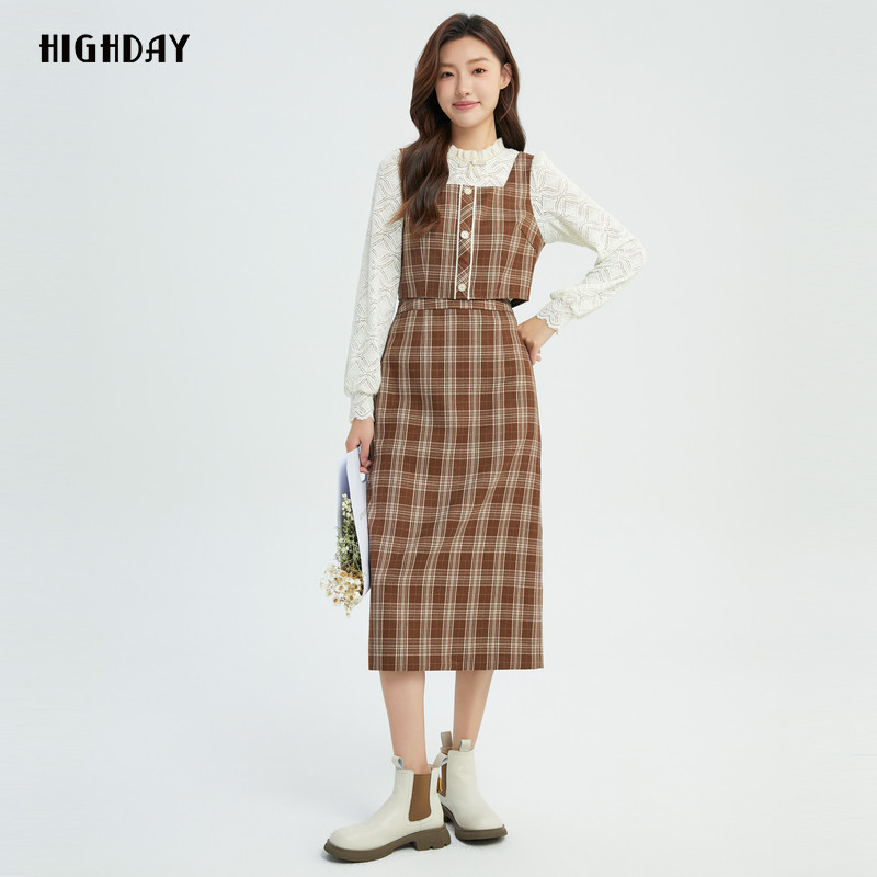 轩日2024商场同款洋气高腰半身裙女秋季新款复古格纹中长裙一步裙