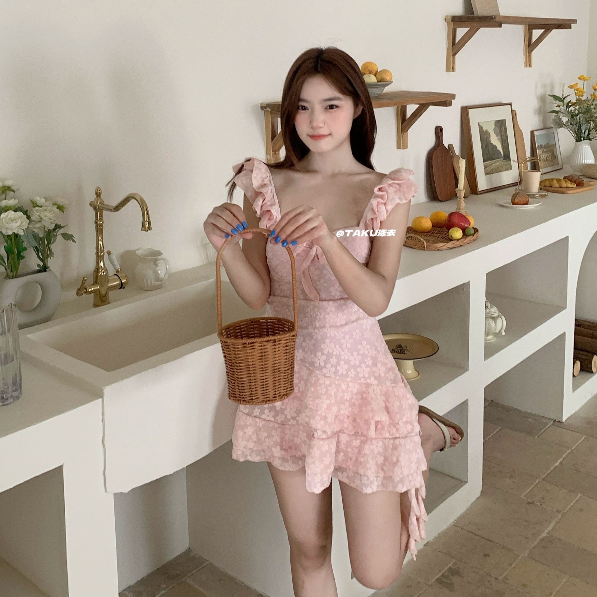 TAKU|韩系少女可爱度假保守温泉连体裙式泳衣聚拢遮肉ins纯欲法式