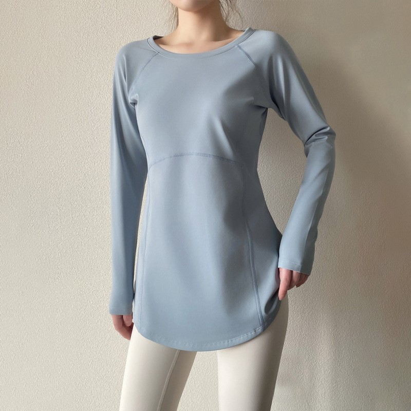 加绒瑜伽服女中长款遮屁股t恤2025春秋内搭打底衫健身衣运动上衣